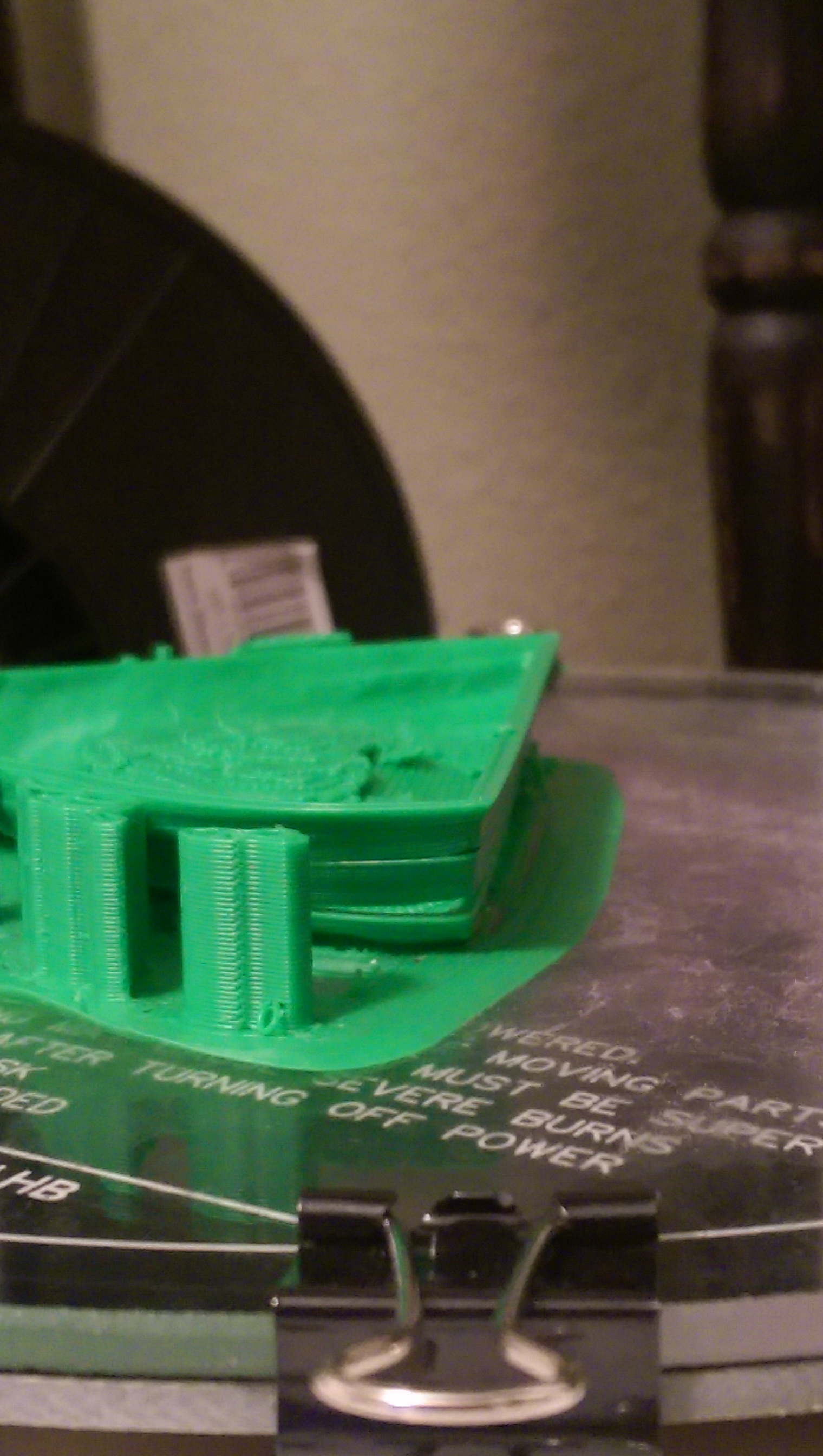 Hello, I am new to 3d printing. I have a new Orion machine. When I print larger prints I have the first layers sticking fine but as the higher layers cool they tend to curl upwards and split. Extruder temp is 210 and bed temp is 65. I have tried going up and down on temps in 5 degree increments with no success. I have reset z height and played with different calibrations and just cannot figure it out. I use the standard Orion settings for the layers that came with the machine and I am using slic3er to slice. Here is a pic as well. Any help would be great as I have started and failed about 10 prints trying to figure this out. Thanks