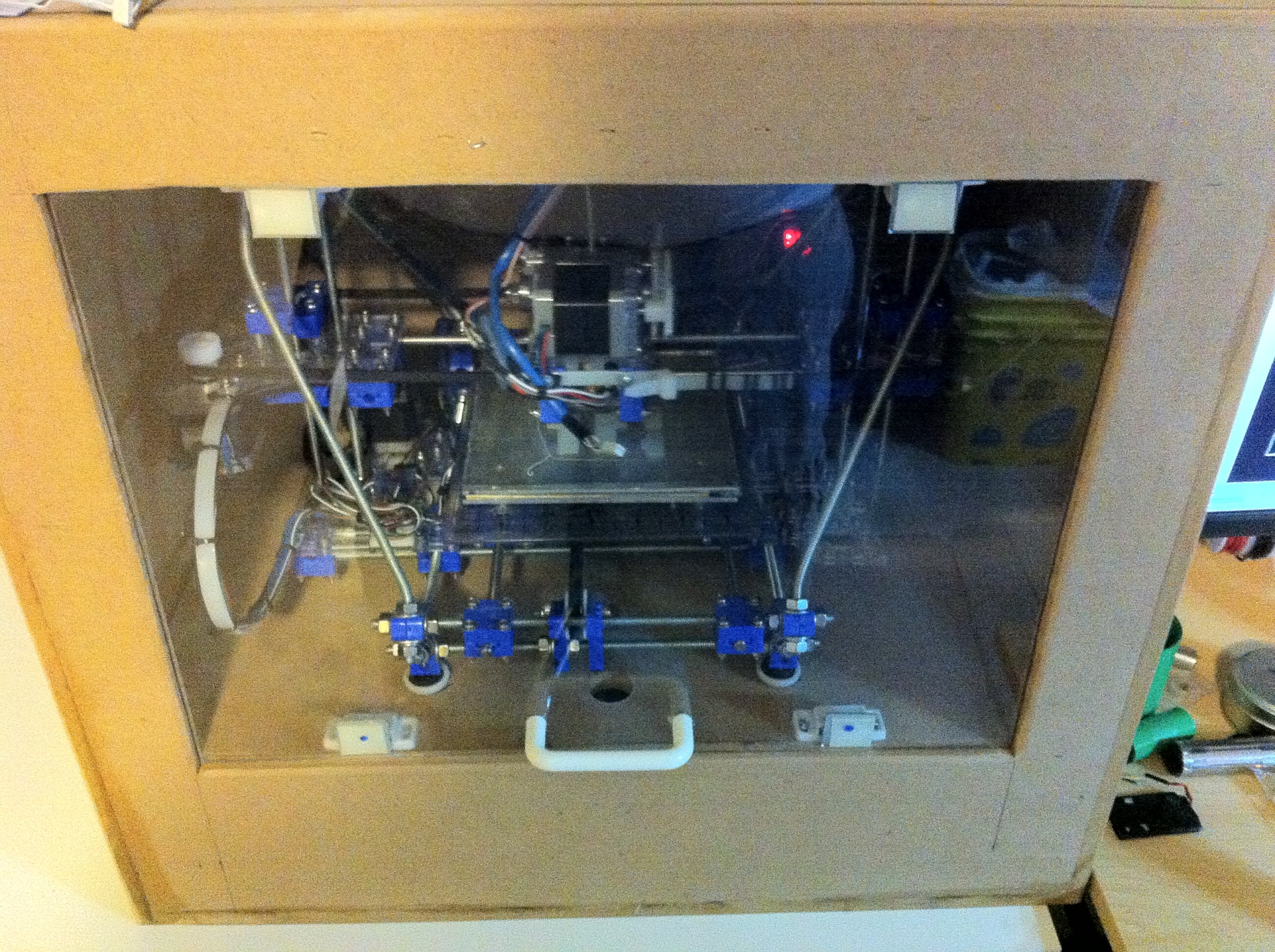 * 120mm exhaust fan connected to a dryer vent pipe going out the window, I need to print a 120mm cowl, but until then duck-tape will do