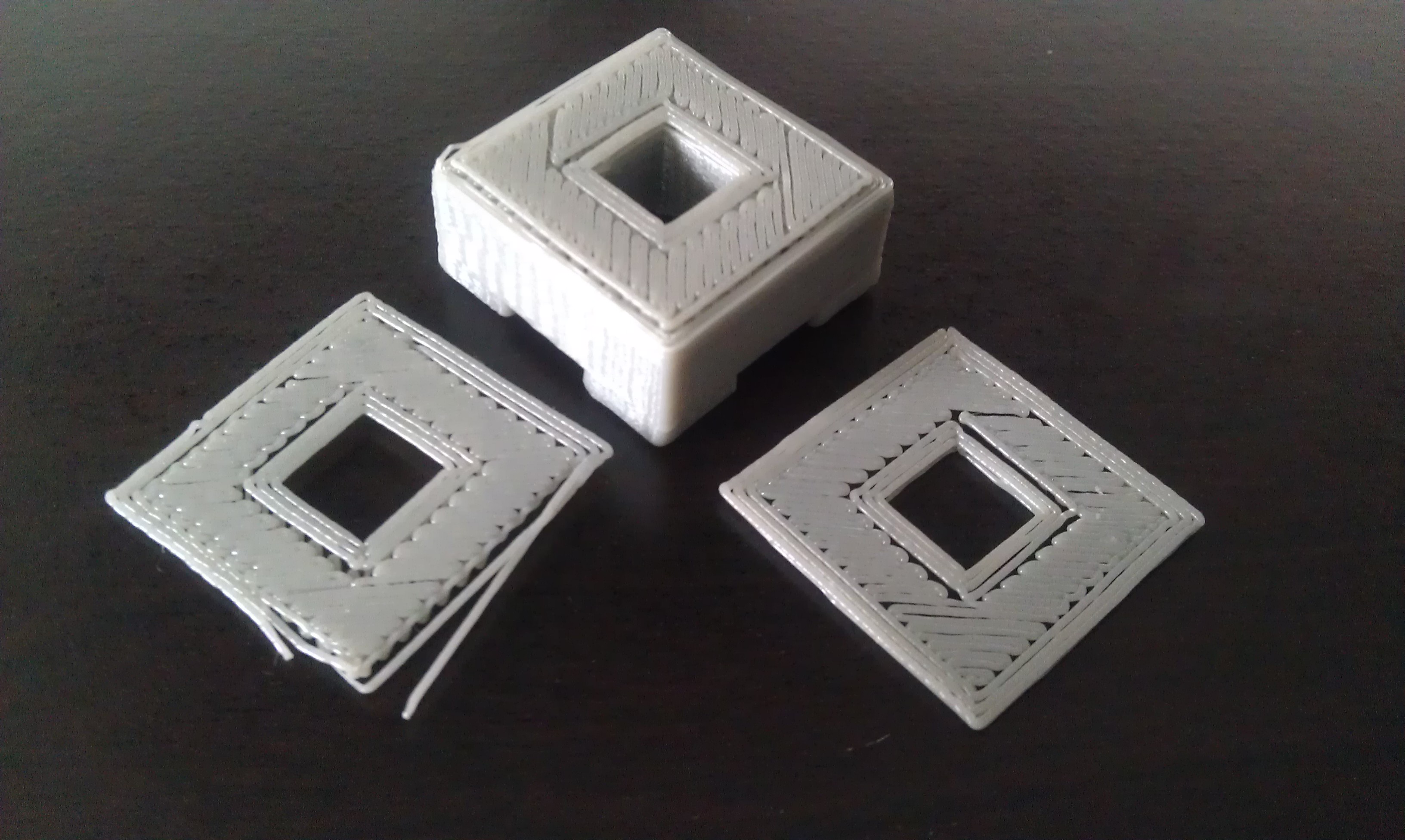 A while ago I thought I would give Cura a try and I wasn't too impressed, all of the prints came out a little bit sloppier than those from Slic3r. One of my main concerns was that it seemed like especially on the first layer, the infill never quite met up with the perimiter, giving me prints that I would have to peel away an outer layer that never bonded to the infill.
