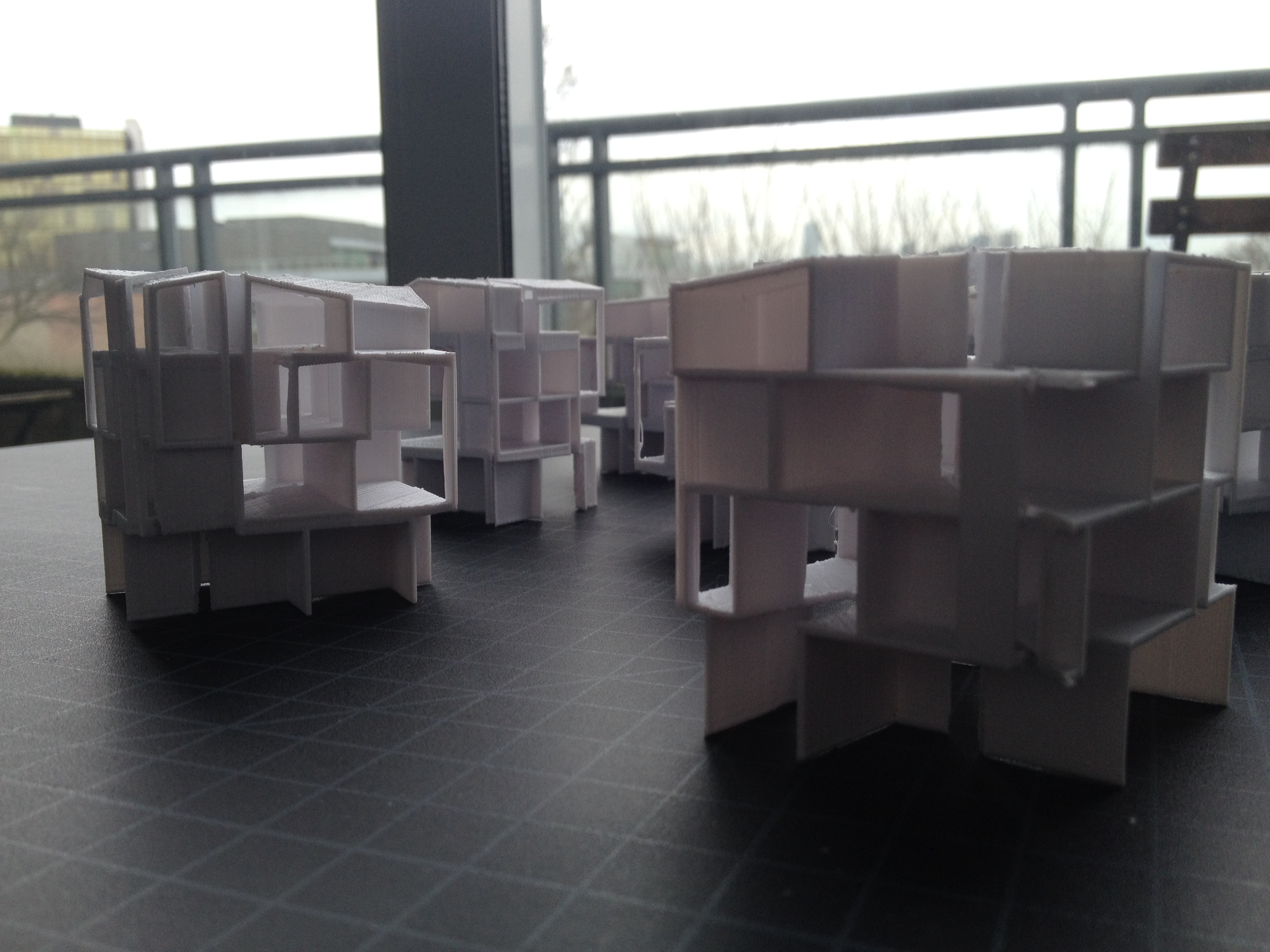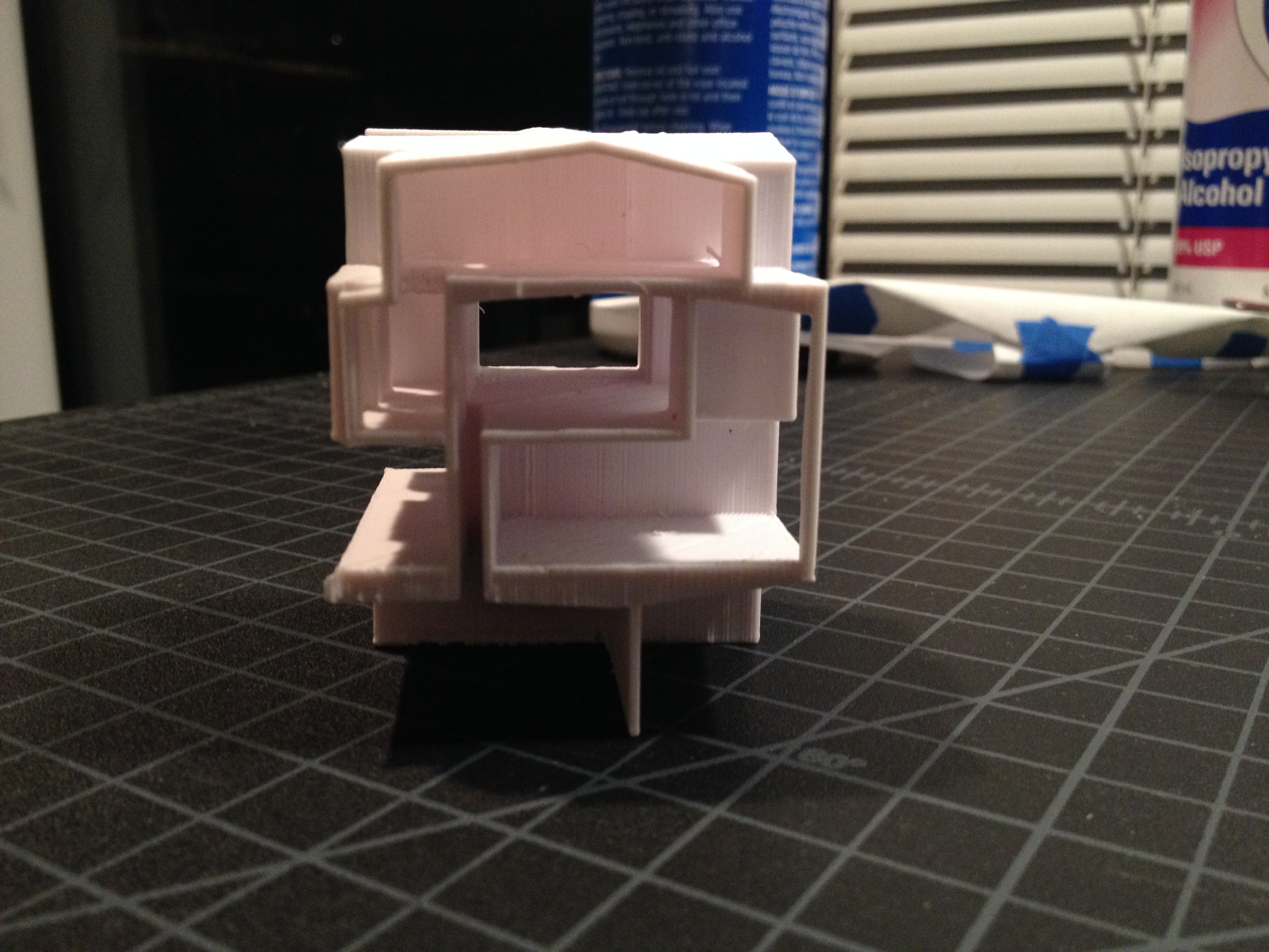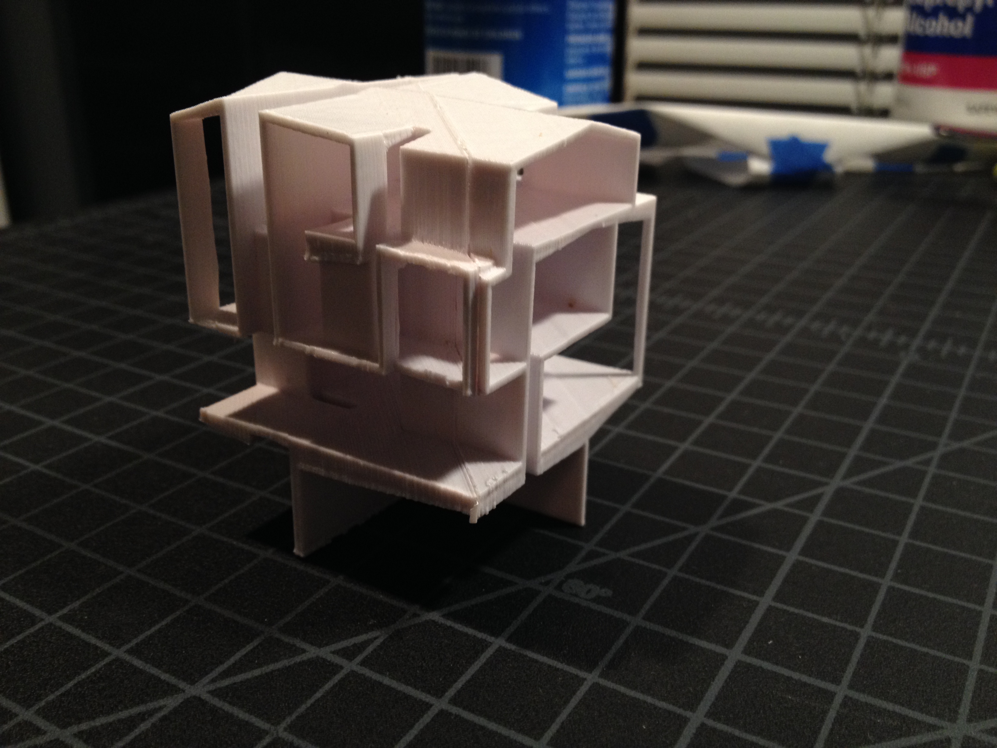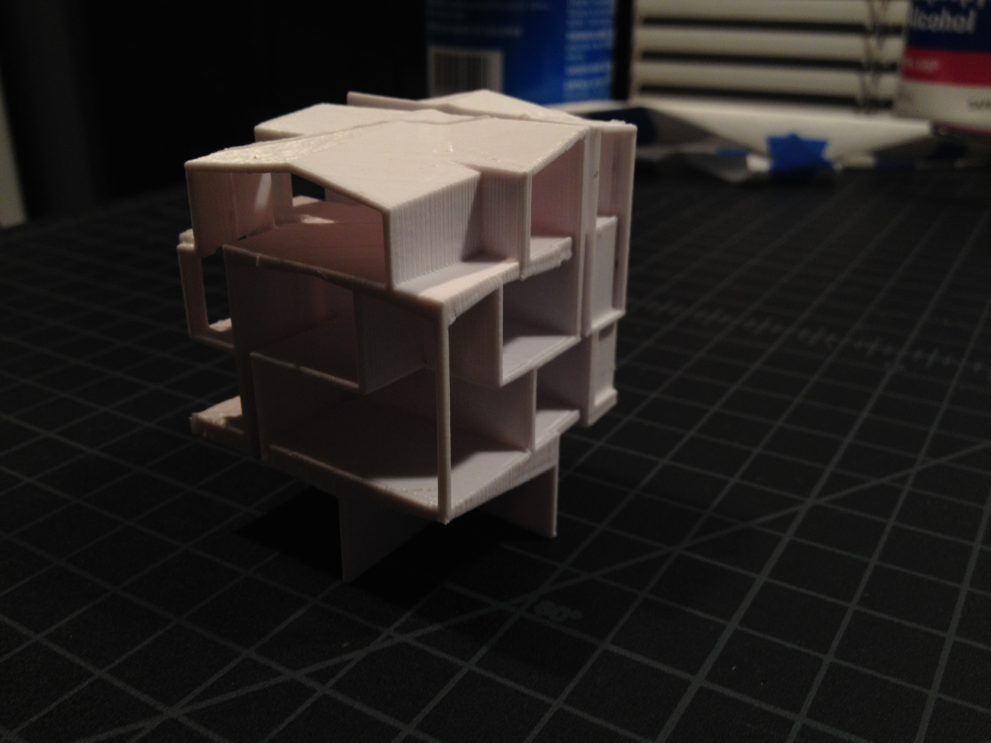 Two parts, split diagonally as seen on the last photo. Barely any support at all, just under those long bridges on the corners, which were the last layers to print. Likely wasn't needed. Simplify3d is a boss.