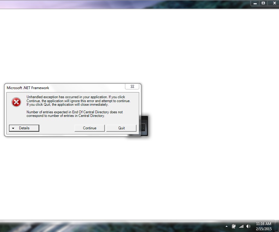 System.IO.InvalidDataException: Number of entries expected in End Of Central Directory does not correspond to number of entries in Central Directory.
