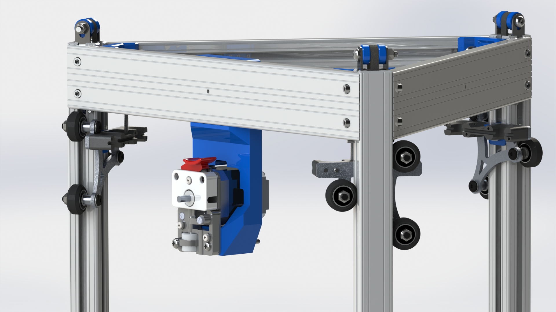 Instead of rushing to assemble the frame, I'm slowing down a bit to design up the necessary bits and pieces to perform a parts transplant from from a Rostock MAX v1 kit. Everything is being designed to be printable in a 200mm x 200mm build area. All parts will be printable, but some are designed to be laser cut from MDF as well. Once complete, I will post the parts. I will be using the Trick Laser Trick Trucks for the build, but the original Rostock MAX trucks can be used also.