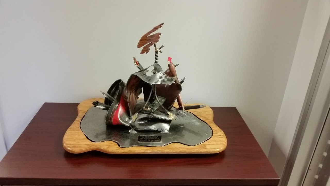 The first stop on the tour is something of a memorial. About five years back, some severe tornadoes came through the area and caused a lot of damage, *especially* in Sanford. A few of SCC's buildings were heavily damaged, and a couple were completely destroyed. They got a call from someone who lived 50 miles away because they found some SCC-labeled microprocessors on their front lawn! Fifty miles! Luckily, since the storms came on the weekend, no one was working and no one was injured. The scrap metal sculpture was a tribute to their employees' dedication to rebuilding, and I'm sure glad they did rebuild, because otherwise I wouldn't have been on that awesome tour!