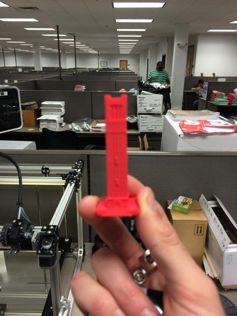 Next was their R&D area. Essentially, it was a cubicle farm with one or two 3d printers on each person's desk - and they were tasked with running OEM and competitors' filaments through each machine and making observations on print quality. They had a pretty good representation there - I saw machines ranging from a low-end Da Vinci machine to a big Stratasys uPrint. I met another gentleman named Stephen (who was also at the 3d Hubs meetup I mentioned earlier) who showed me a Marvin printed on the Da Vinci with some XYZprinting PLA. It was a neat print because it was pretty clear - but it also had some stringing, which honestly I was glad to see, because it made me feel pretty good knowing my printer could do a better job.