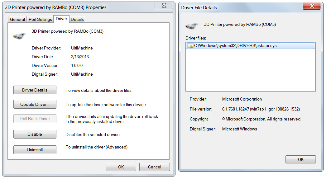The Com3 port is the same for Arduino and printer. I've uninstalled the driver a few times and re-installed it.