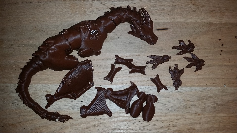 Several pieces are already assembled to test fit: Head(2x), neck(7x), tail(15x), body(3x). Here is my progress so far. The pic turned out potato. The actual print is not that jagged or layers that big.
