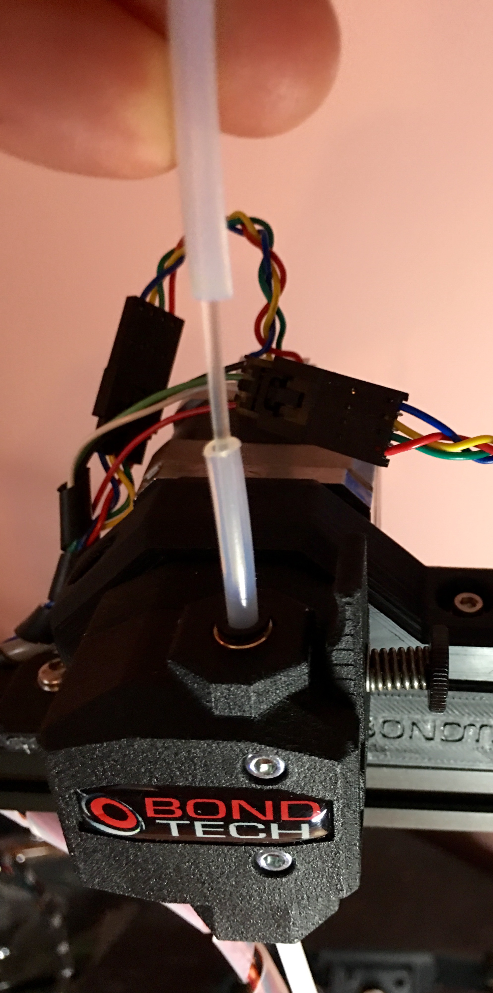 - it's easy to feed the filament in, you push it through the long tube from the spool to the end where you can grab it to push through the extruder and Bowden.