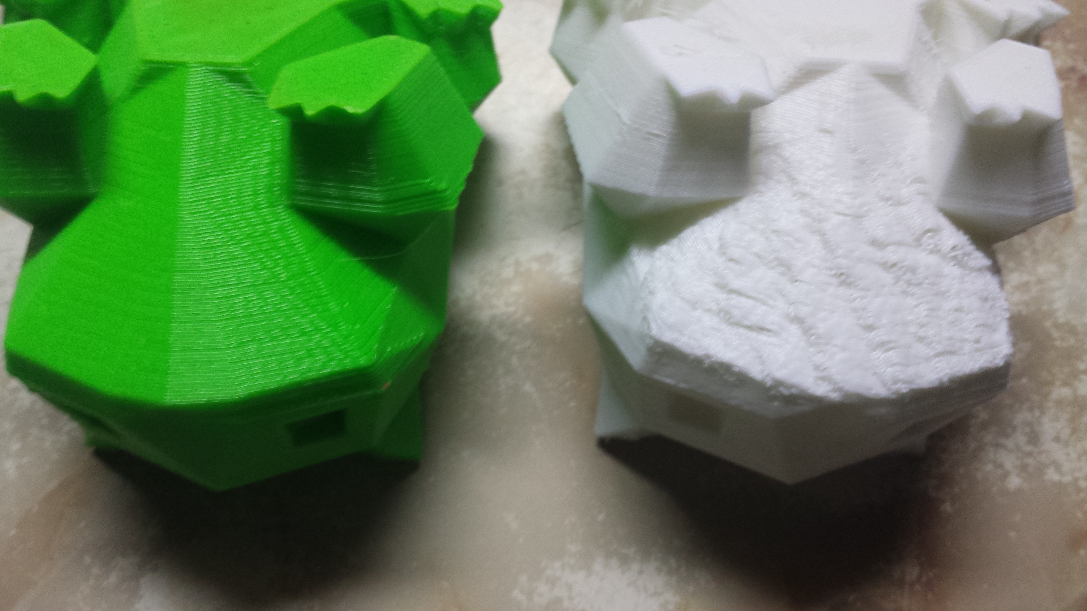 The green one is a good print before messing with the hotend. Now it print ok but some prints are coming out really bad. The white one is example.