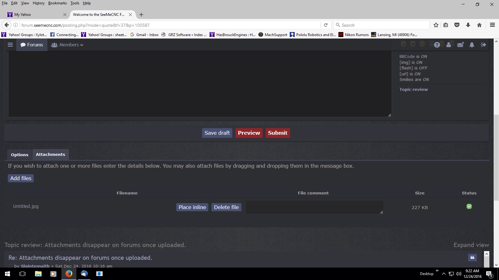 Attachments disappear on forums once uploaded.