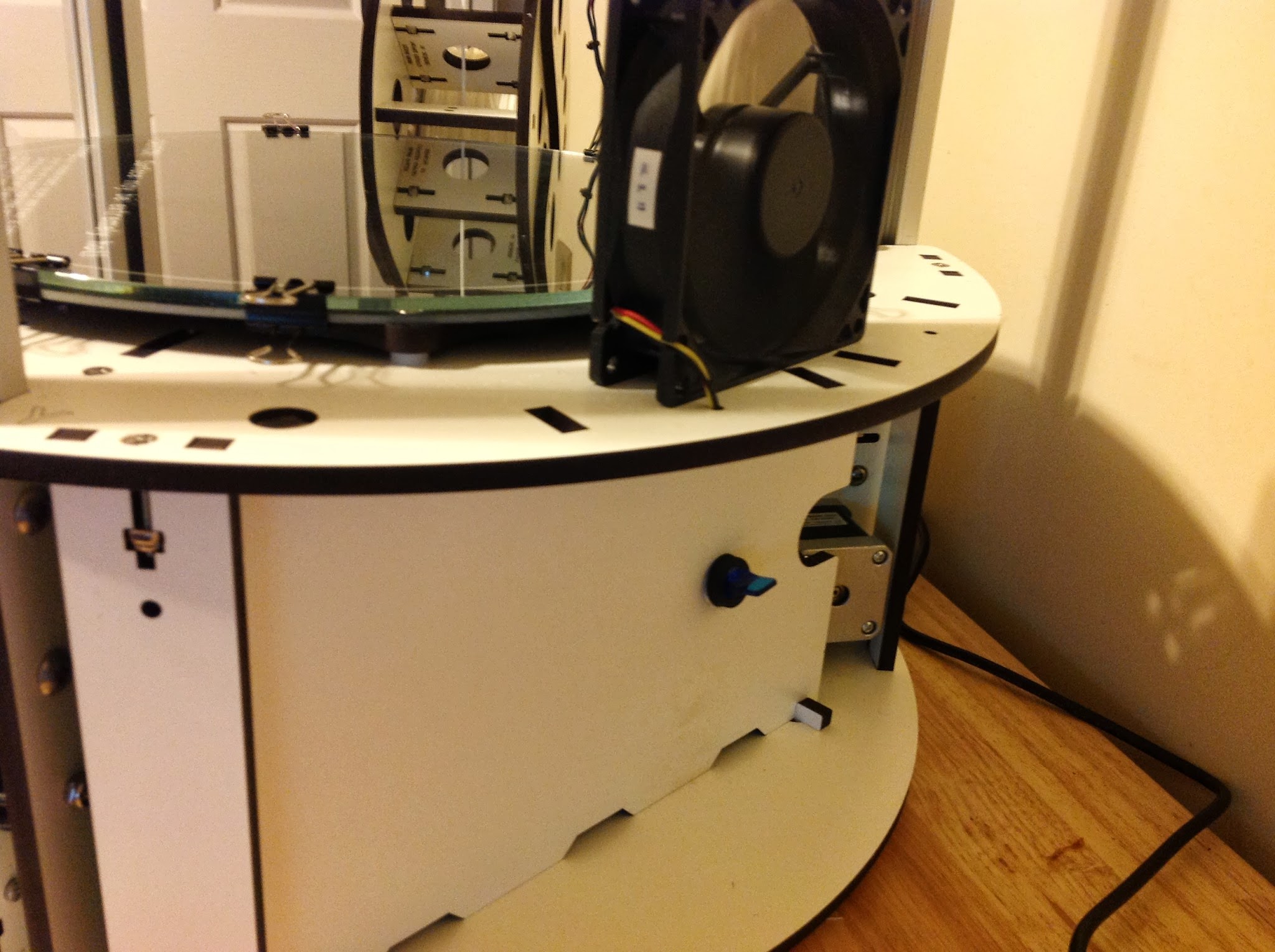 Second I added a switch to my parts fan so I can turn it on and off as necessary when printing PLA. Initially I had it wired to run continuously and manually rotated it so it wouldn't blow on the bed when I didn't want it to. I mounted the switch on the second bay door.