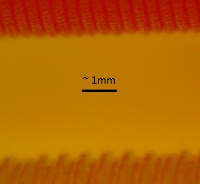 Used a "cheapo" stereomicroscope at around 30x with a 9MP camera on a trinocular port. Between not being organized enough to have built a proper stage for it and still being in kindergarten on the camera software, i was having trouble getting the camera to "look" at the desired region of interest. Nonetheless, it is very handy for old eyes in terms of magnification + depth of field. Here are a couple of pics of single spiral perimeter tubes in Ninjaflex.
