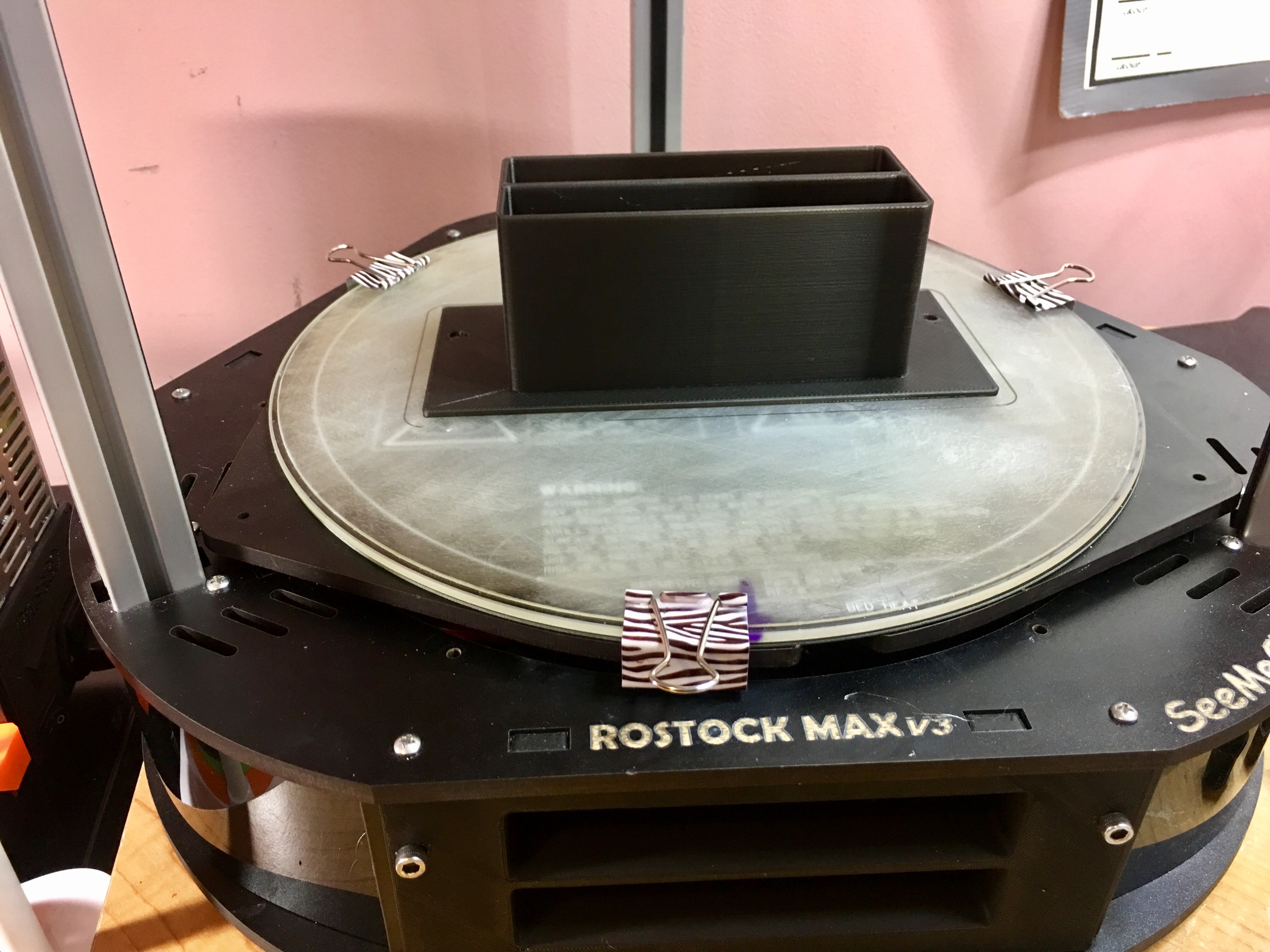 Finally, you can see in the last drawing above a recent modification - the FSR Plate now has three ears. In my V3 photo I'm using big binding clips. I needed to add 3 additional rubber plungers under the FSRs to make room for those. But, by tweaking the FSR Plate with the ears I can remove those and use the ears to attach the Onyx/glass with the little blue (or other) holddowns. I do one other thing on my printer, I adhere the Onyx to the top of the FSR Plate with a disk of the 3M 468MP tape we use to attach PEI. This holds the Onyx perfectly flat while allowing it to expand and contract in the X-Y plane without buckling. It works quite well.