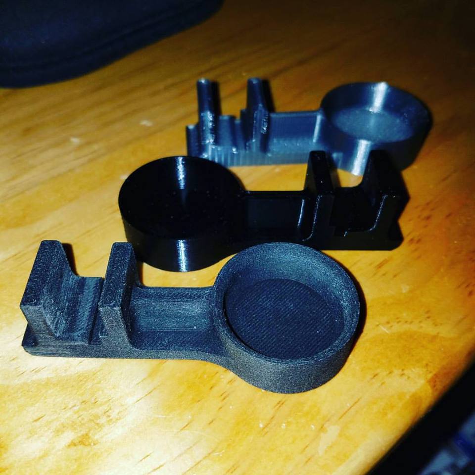 I used matte black HTPLA from ProtoPasta and I had great results with a few strings but the finish is outstanding. I did use temps of 215 first layer then 210 the rest of the print, bed at 70, 25mm print speed, 4mm prime/suck at 25/50mm/s with 5mm wipe and Jump 0 Trigger 2 in Kisslicer. I heat treated the part in a toaster oven but didn't notice much change so I will test it in the real world soon.