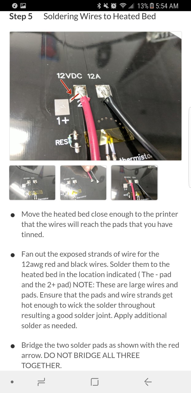 I'm at the home stretch of my build and wanted to confirm something: during Step 4 Final Assembly, Step 29 of a rev10 bed, Step 5 mentions bridging the two solder pads as shown and has red arrow pointing to 2+ and diagonal pad, but the subsequent image doesn't show any pad bridged together. I wanted to verify if I'm only bridging 2+ with the diagonal pad or if I'm bridging 1+ and 2+ pads using the diagonal pad?
