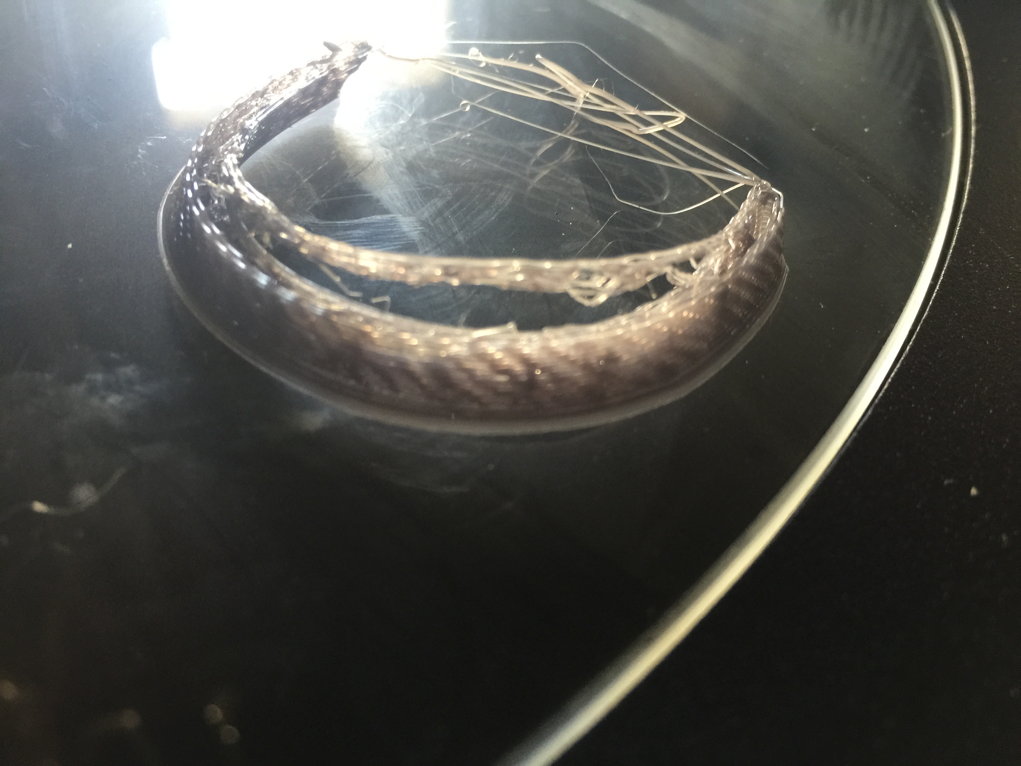 Ok. Back. So I am getting some prints but a few issues. Sliced in Cura @.1 mm layer height. This is the start ...I aborted ...of a skirt surrounding a small German helmet model. Adhesion is better when I slow the print way Down. 50%. Basically what I get is a sort of "shredded wheat" composition to the build. I can break it apart with my fingers. Extruder head temp was 220 C Bed was 70 degrees C.