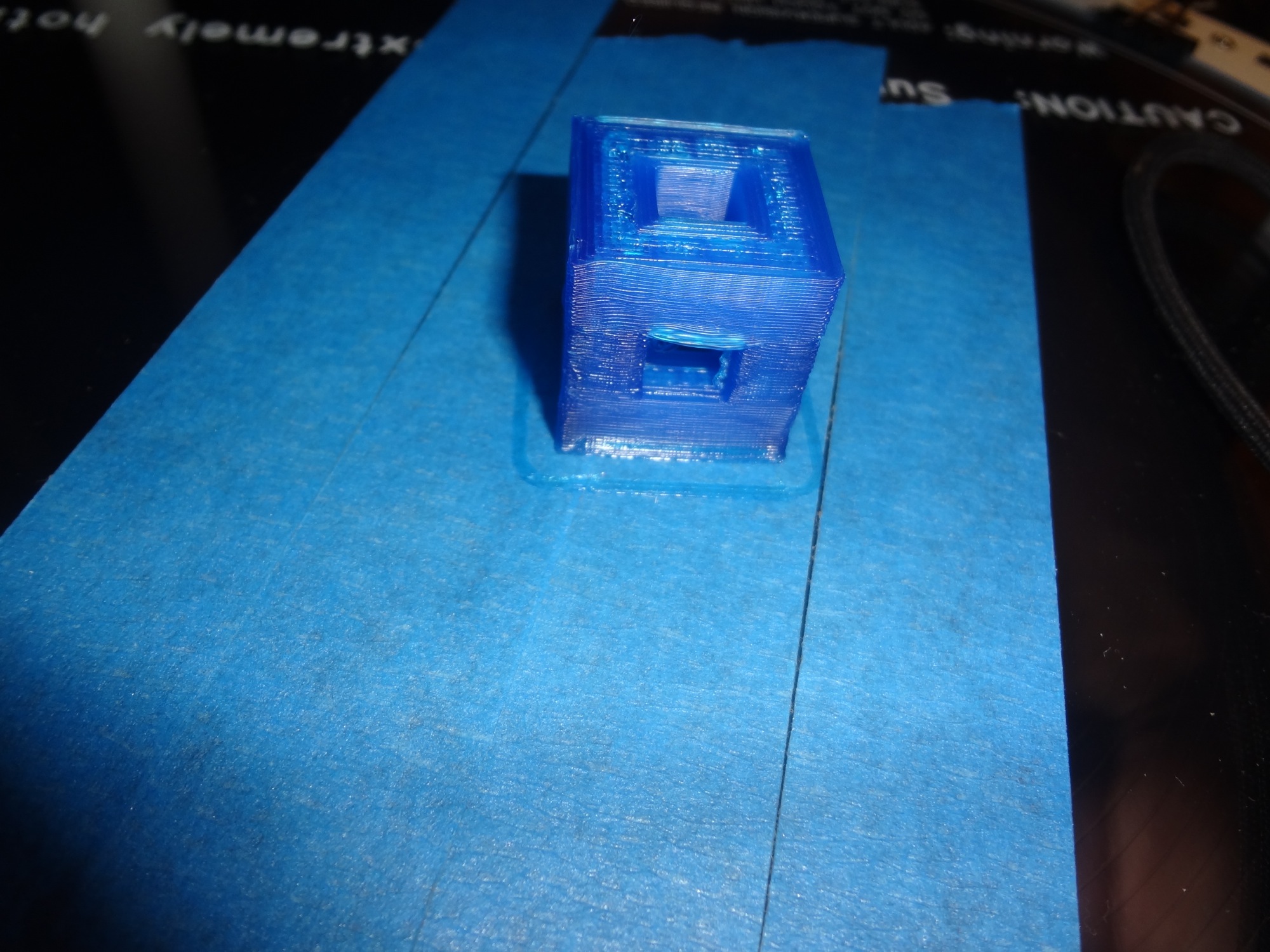 I got everything calibrated from the manual and then printed the calibration cube. This is with SeeMeCNC Blue PLA. Here are the prints with the piece still on the bed.