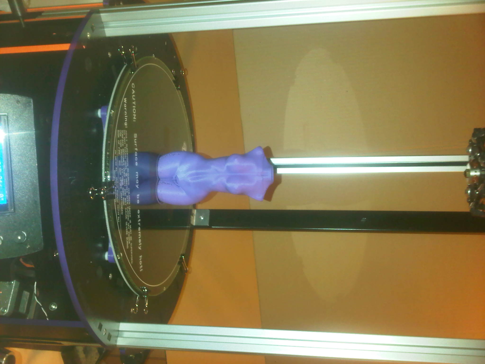 Well its been a year and a half since my 9yr old son and I built a H-1 and have been using it for lots of fun and work related things. ME (dad) decided to take the leap and get a Rockstock now while we had problems during the build all issues were taken care of by SEEMECNC immediately and with advise along the way we now have a awesome looking machine that is completely stock and up and running our first print was Saturday evening and half way thru the extruder jammed inside of the ezstruder unit, wasn't sure what happened so Sunday we tried again and low and behold did it again so went thru all pgs in manual and check for anything similar as well as forum but lucked out i can tell you that the motor got hot real hot 100c and nicely burnt the shape into fingers when i went to press the red lever to get filament out. spoke to John today at SEEMECNC and he had me check the coils of the motor and ta daa it is way outa whack. new one on way. robbed from H-1 and fired it back up3rd print looks awesome needs some tweaking used Slicer that came with machine don't know slicer setting just went with what Gene suggested in manual and print was again Awesome and gene I am buying several lottery tickets calibration set up was dead on on all 3 towers and perfect in center of bed (ya baby). print number 4 was done in kisslicer with mhackney's KISS settings no changes at all and let me tell you no let me show you the women bust printed single wall hollow and although some weird popping sounds from new reel of ABS coming out of nozzle which was evident from the mini holes hear and their in the body it turned out Freaking cool, super light due to hollow but i figure that if i change config to 2pass or wall thickness it will be dead on perfect the lines are tight and crisp cant ask for anything better than this just goes to show that an Original stock unit can produce sweet prints. this thing Rocks. only thing we added the triple ezstrudder top set up.