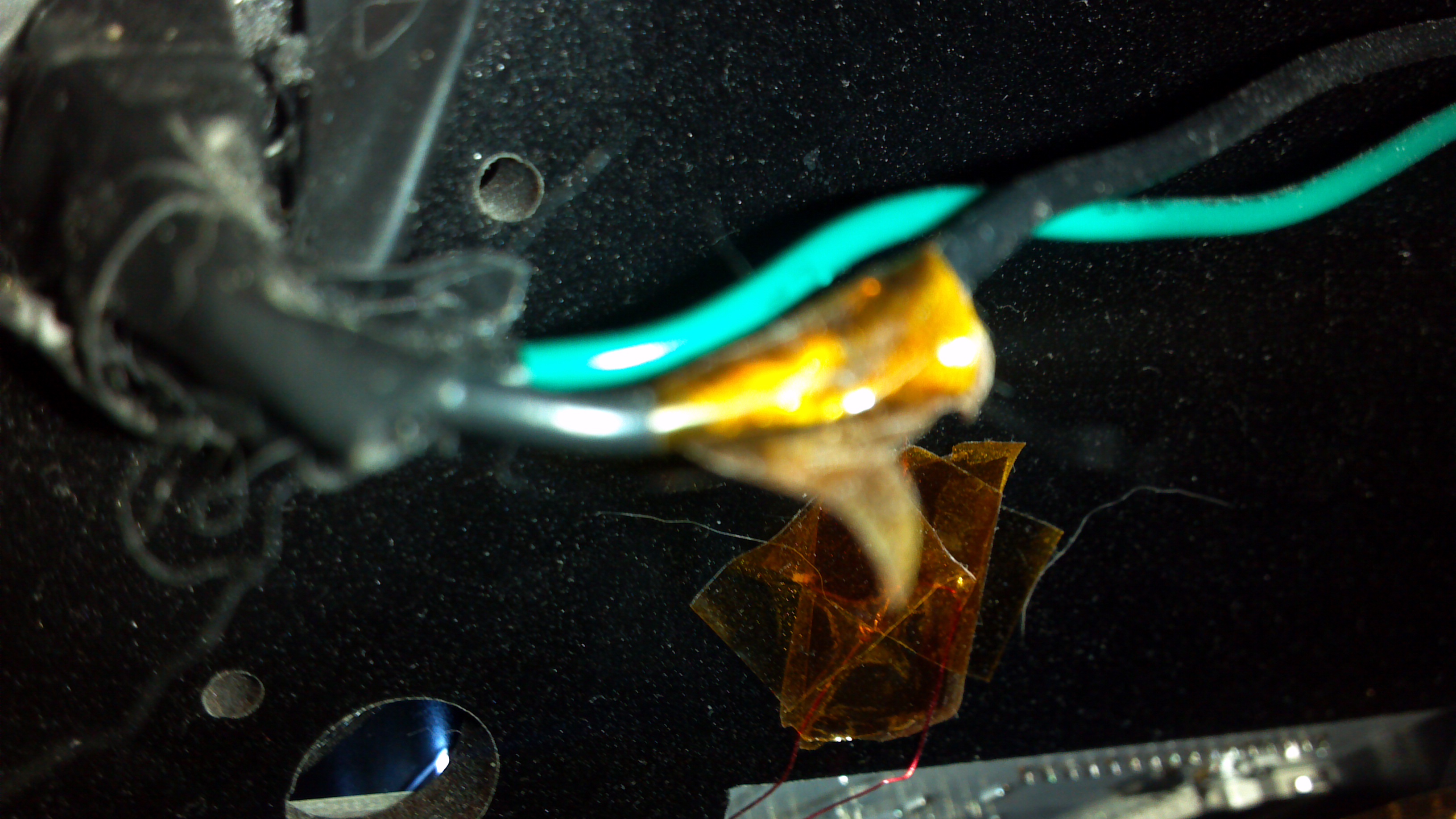 ) so I burned off 2 inches of the enamel, cleaned the wire and wrapped it around the foil. It'd be better if it was copper foil instead of aluminum foil, and I soldered it to the copper. I then attached the other end of the wire to the ground (ok, it wasn't the ground wire itself, but circuit wise it's the same point). Yes this needs some TLC, I keep telling myself I'll clean up the wiring. Little do I know, I'm a good liar