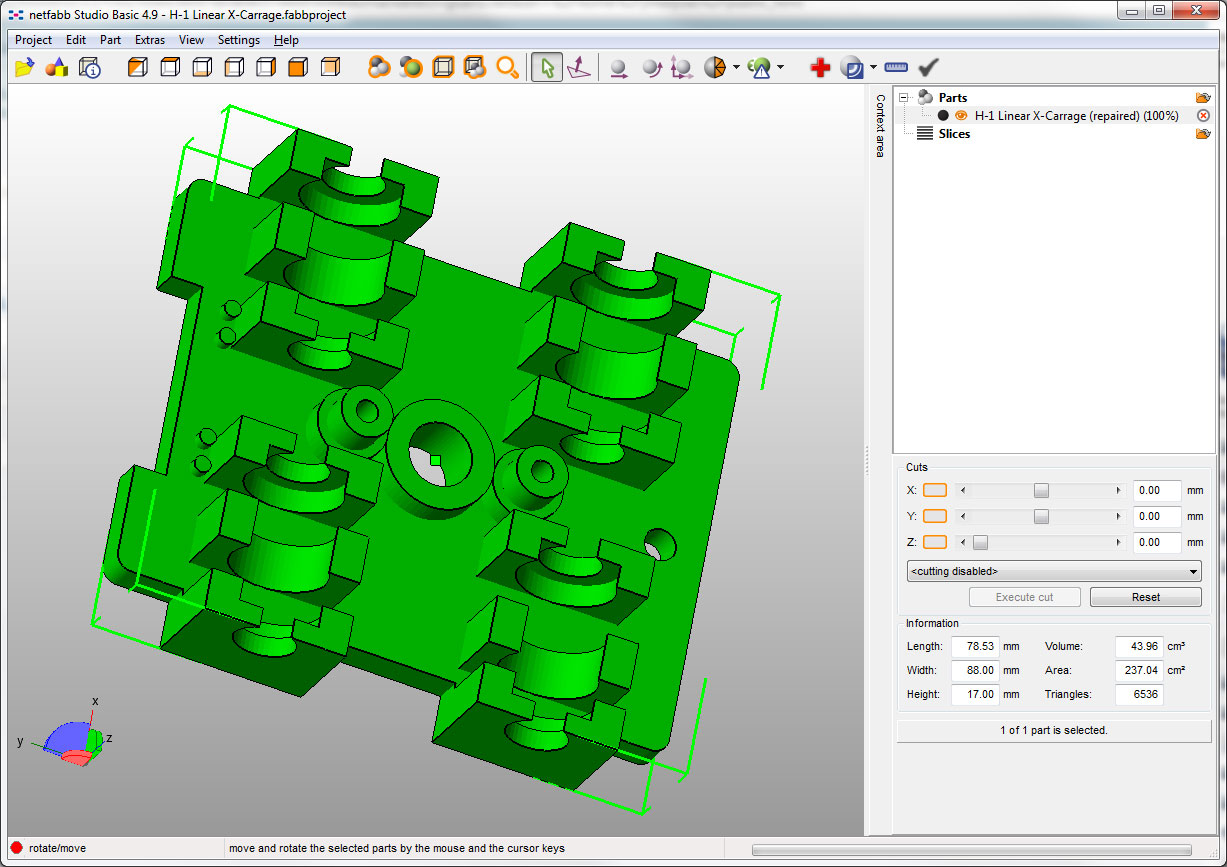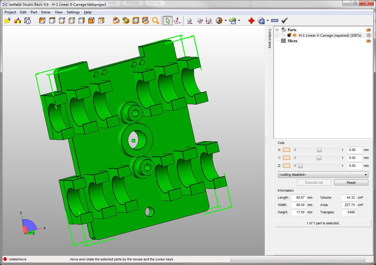 just updating my X-carrage pics.. most likely will order a ramps board tomorrow so I can print it for testing.. this carrage will use the current H-1 design, just replace the x rails with 8mm rod, snap in 4 lm8uu bearings, and yer done.. standard h-1 extruder should work on it.. captures hot end nuts, and cutouts for the tensioning legs that protrude from the bottom of the extruder