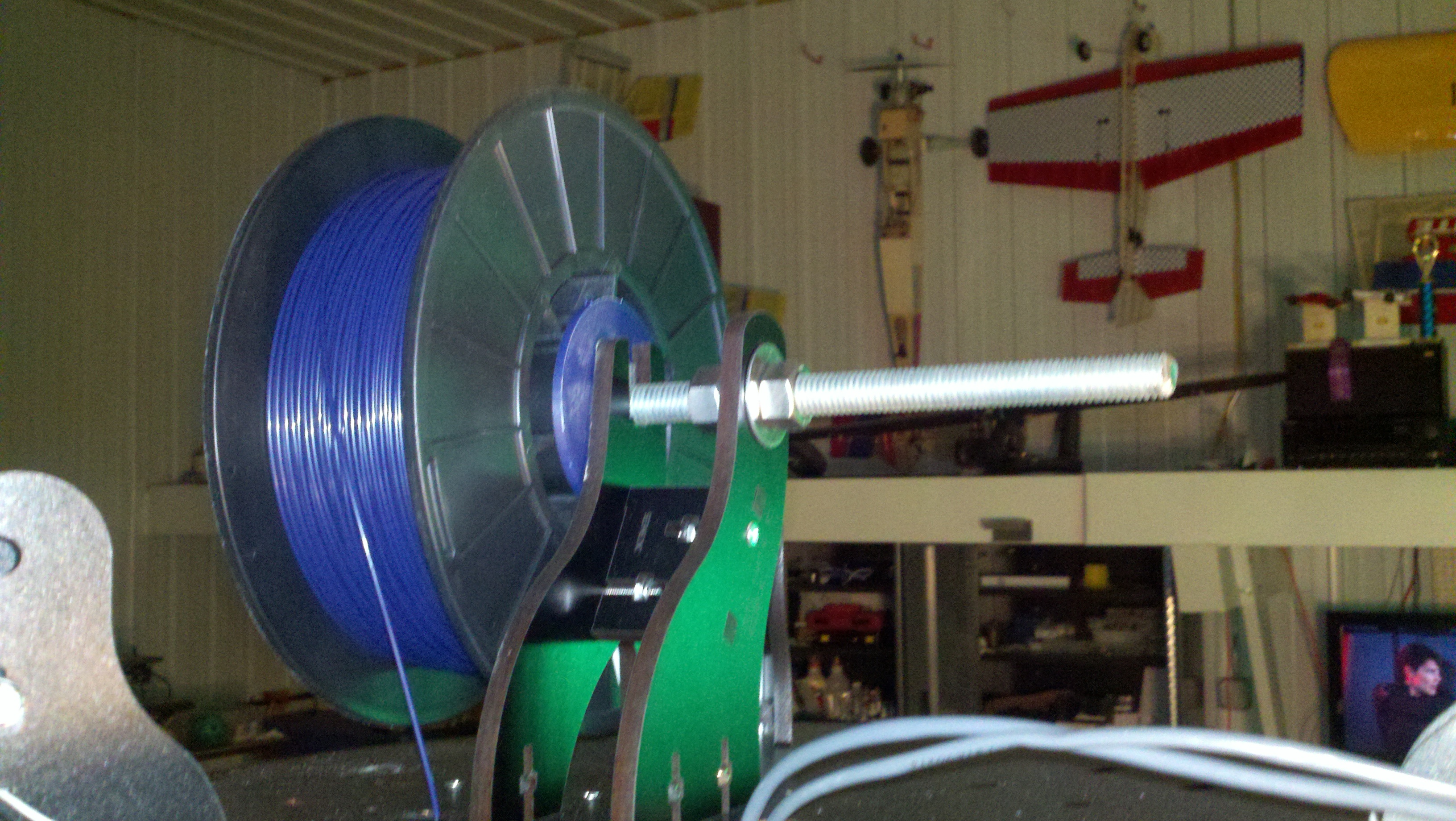 I have been noticing a bit of build up on the extruder drive wheel. I think it is caused by the drag of the spool when printing at high speeds. I had a piece of 1/2" all thread in my shop and it fit perfectly in the stock brackets on the top. I printed these bushing to fit the SeeMe ABS rolls. They fit great and spin super easy. I also made this one for the PLA rolls because I just noticed they were different. I have not tried the PLA mount yet but do not expect any issues.