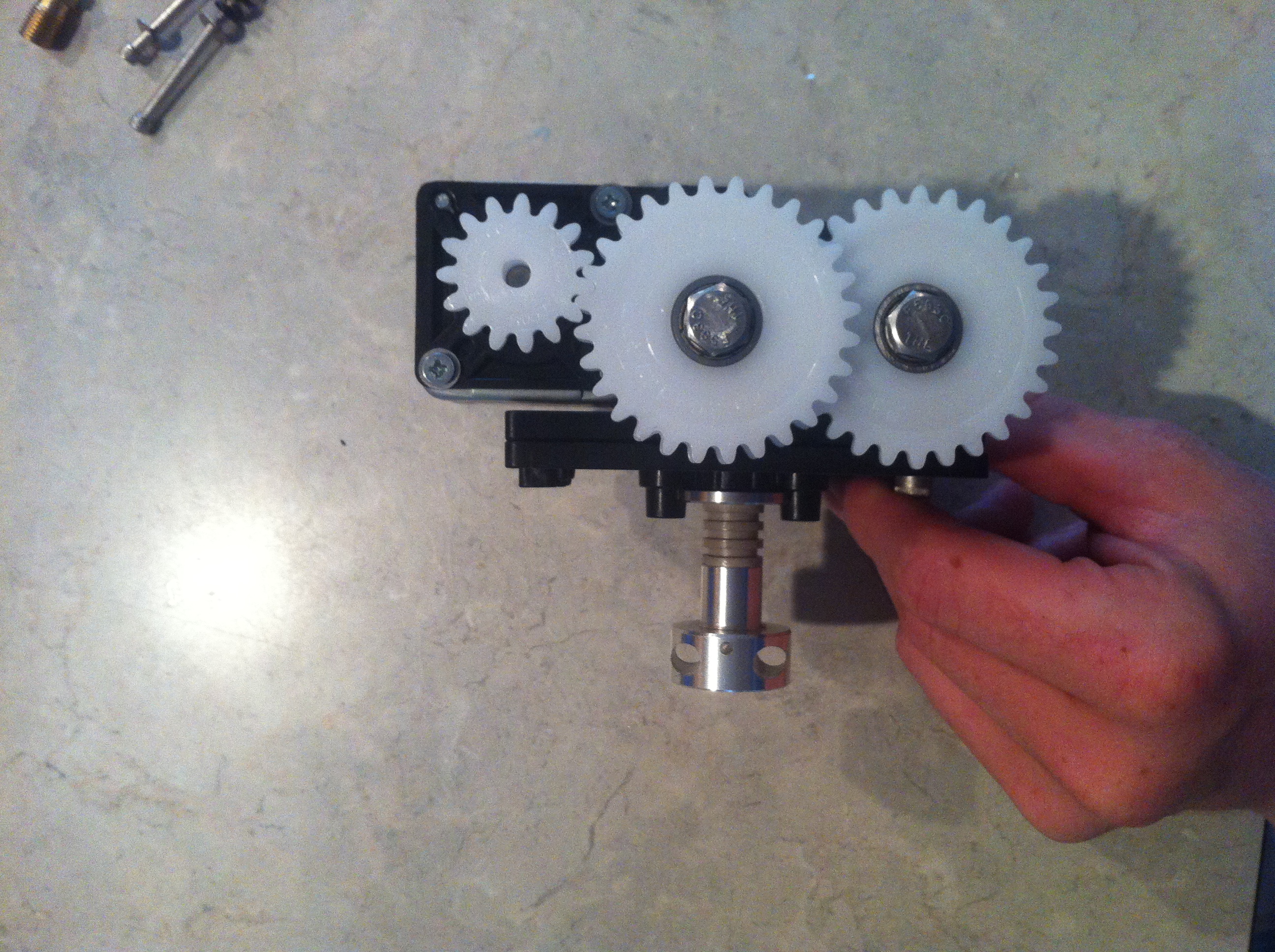Yeah, I hadn't anticipated rebuilding my extruder but had to do so last night cause I got oozing from the sides (my fault). I am using the new black plastic parts for mounting the bearings, gears and extruder. Much more solid!kilroyo wrote:Nice !! those parts look beefy compared to the older parts