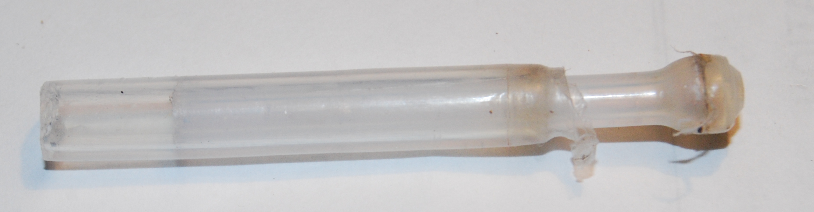 The PTFE 2mm tube came along with it. This means my only perfectly sized tube is now smaller than it should be. Well don't have any PTFE sitting around but lets clear the clogg first. I found two ways online. Acetone and torch. I choose acetone as it was later at night and seemed less an issue. (here is a good link to torch method http://www.youtube.com/watch?v=6bTfl35zlHE ) I left it soaking in Acetone for 48 hours. When I took it out it was a soft guncky consistency. I use a drill bit to push it through the nozzle and used a popsickle stick cut down to fit ot scrap any other stuff out. I also had on hand a small resistor where the wire was a perfect fit to push thorough the nozzle opening.