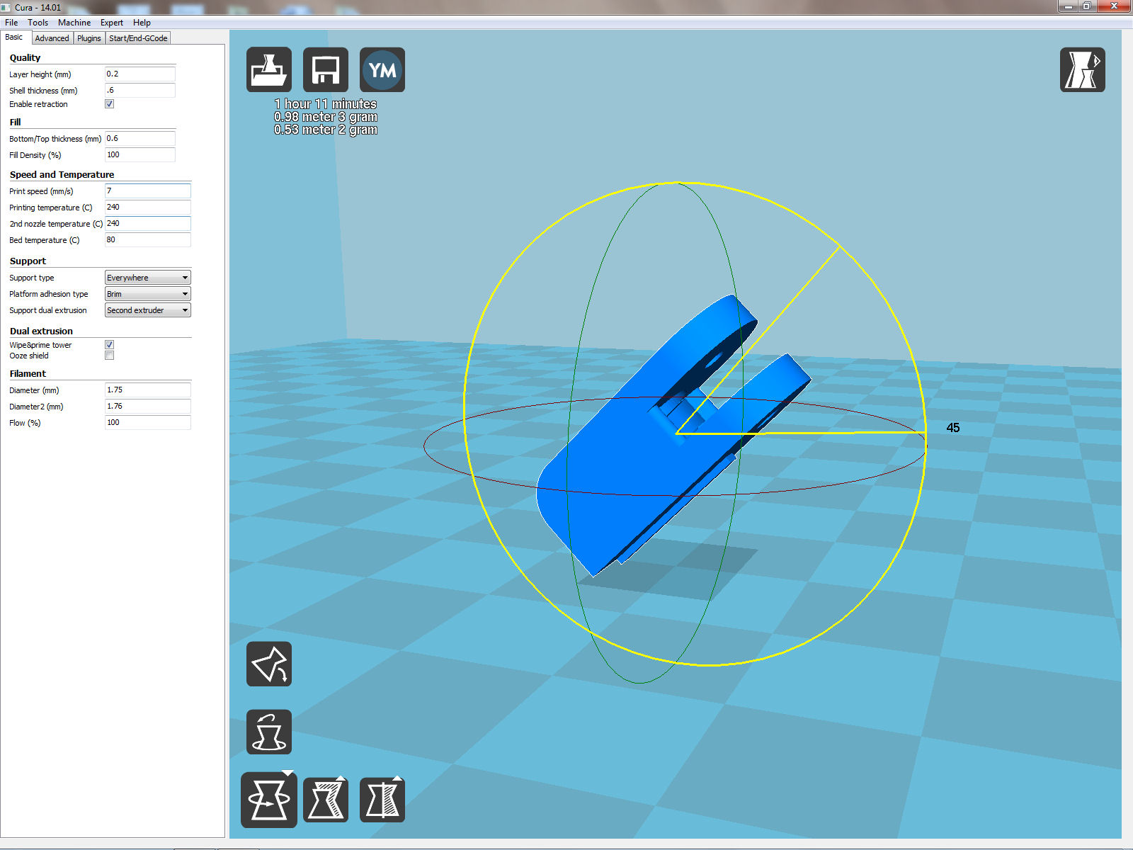 I am using Cura 14.01 as my preferred slicer as I learn to use dual hotends. I also use it when I am using a single hotend. If you want to follow along with the following discussion you might go ahead and download Cura from this link: https://www.ultimaker.com/pages/our-software.