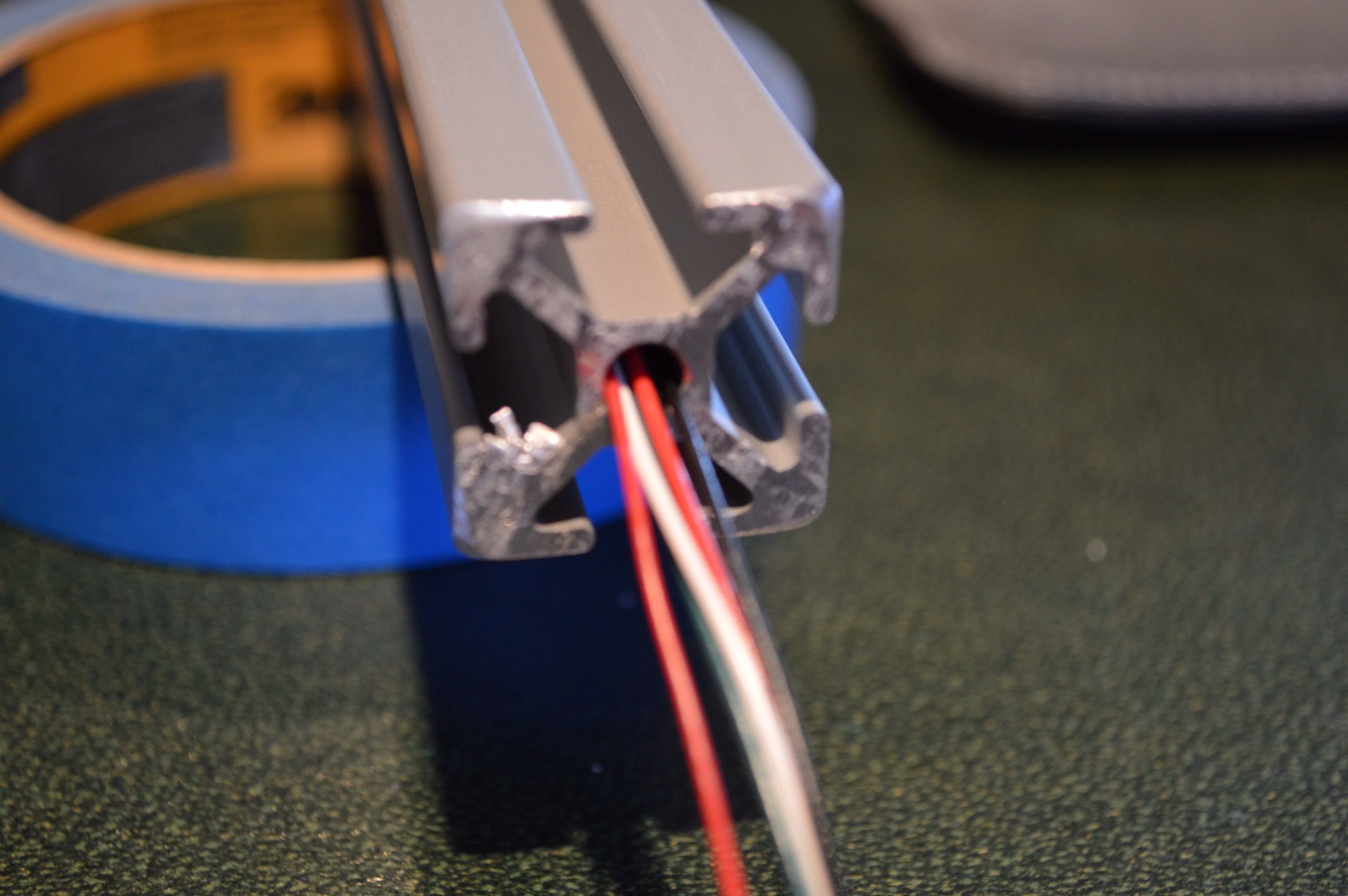 When threading the wires through the alluminum extrusions, I found it worked best to turn the alluminum in the opposite direction with one hand while feeding the wires with the other hand... this made the wires pull themselves through much easier.