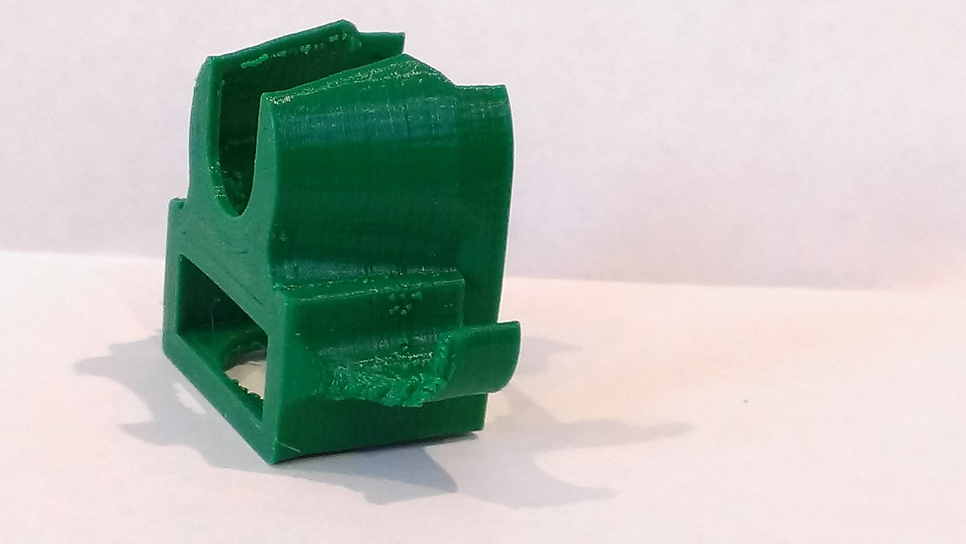 When you print in PLA, you need to cool the filament as it's being extruded. http://repables.com/r/212/ You should print this guy out of ABS and there should have been a squirrel cage fan that came with the parts. That's what it's for.