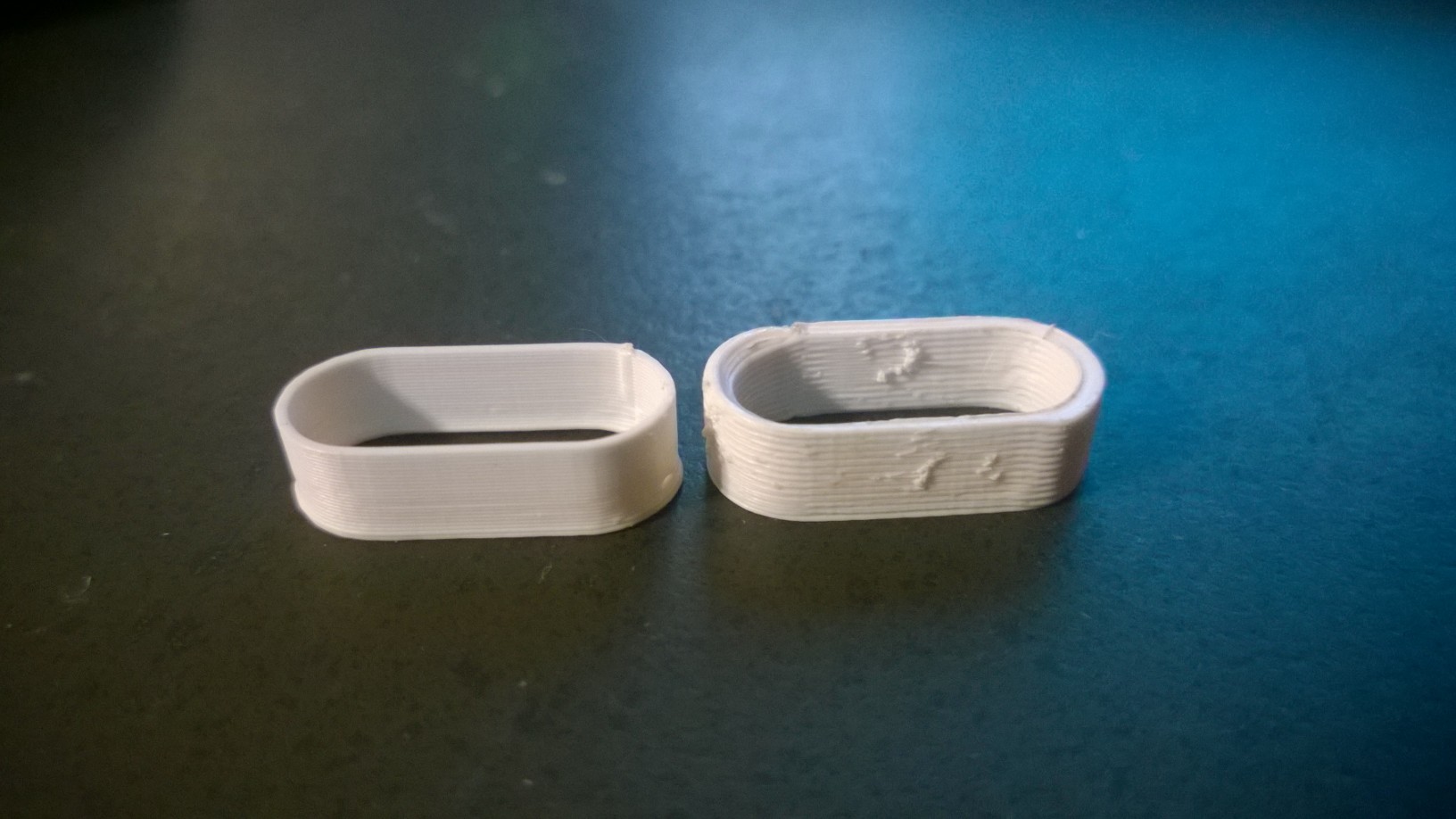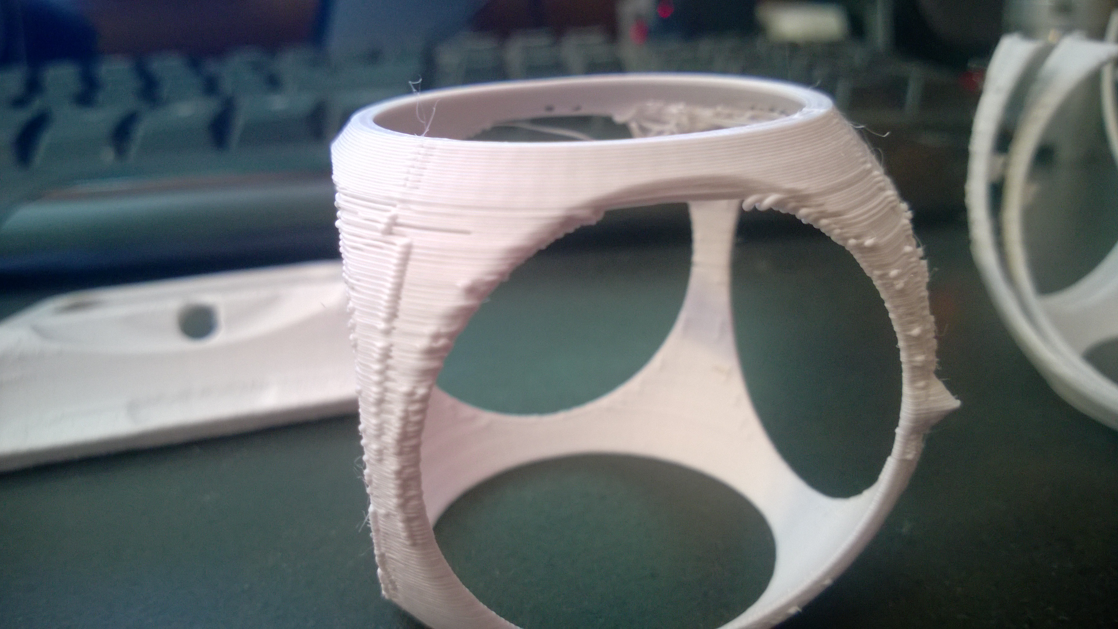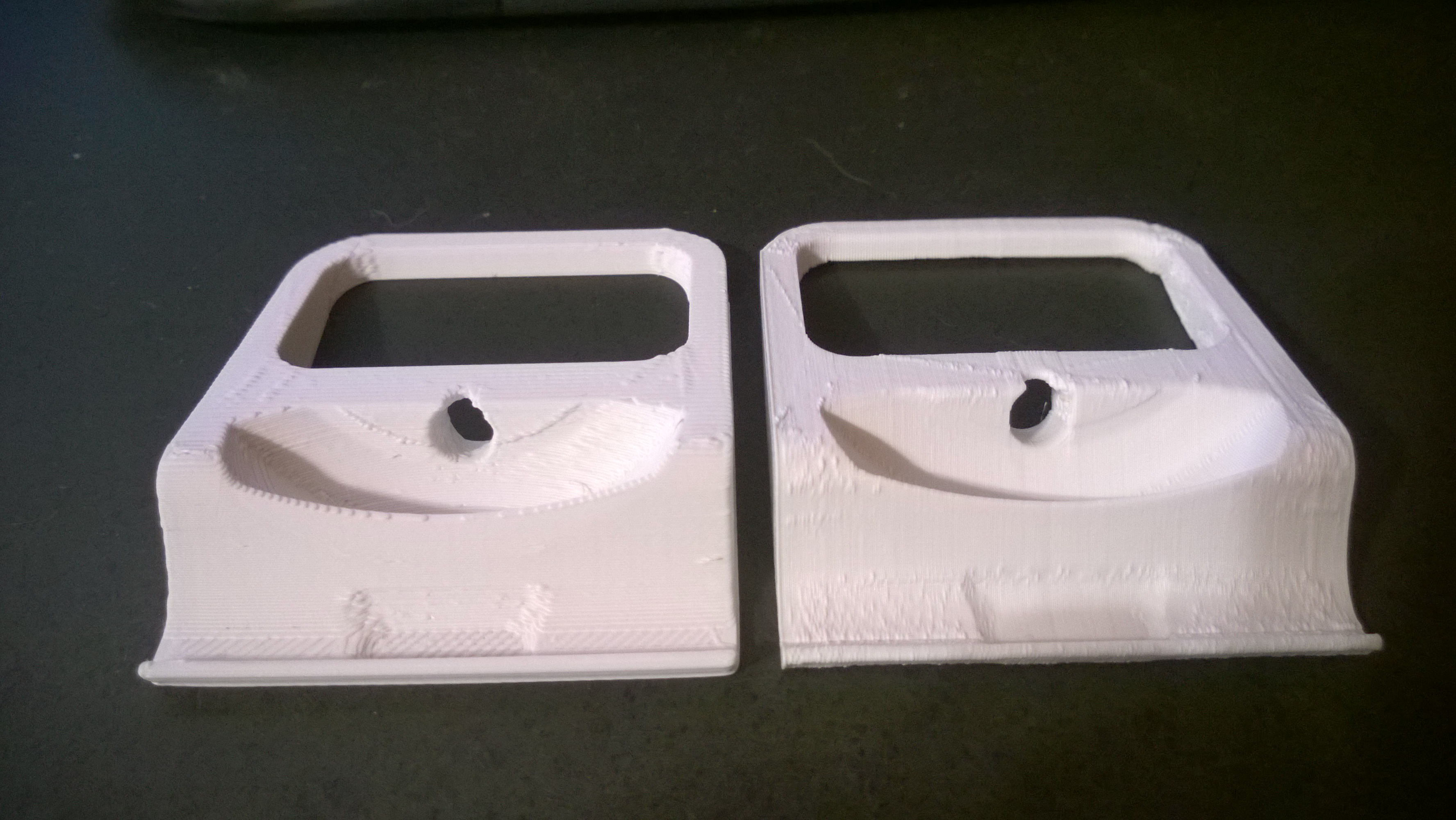 I have had my Rostock working for a few days now and have been using Cura recently since I have heard good things and it appeared to be much faster for certain prints I wanted to do. However I have had trouble with strange bumps on curved surfaces, and some flat surfaces as well. I am thinking it is related to how Cura handles the infil and inner lines, since it seems to be printing them much too fast in the thinner areas, causing serious harmonic oscillations on the printer. I noticed this first on the GyroCube which came out looking terrible and failed halfway (the hot end nicked the print and snapped it off over a few cycles) the fact that the Gyro was the worst looking one hits towards it being harmonic, since it got worse the taller it got, where the part could move more. I am not sure if anyone has had these issues with Cura, or knows how to make it print those areas slower or something (it just goes crazy in there).