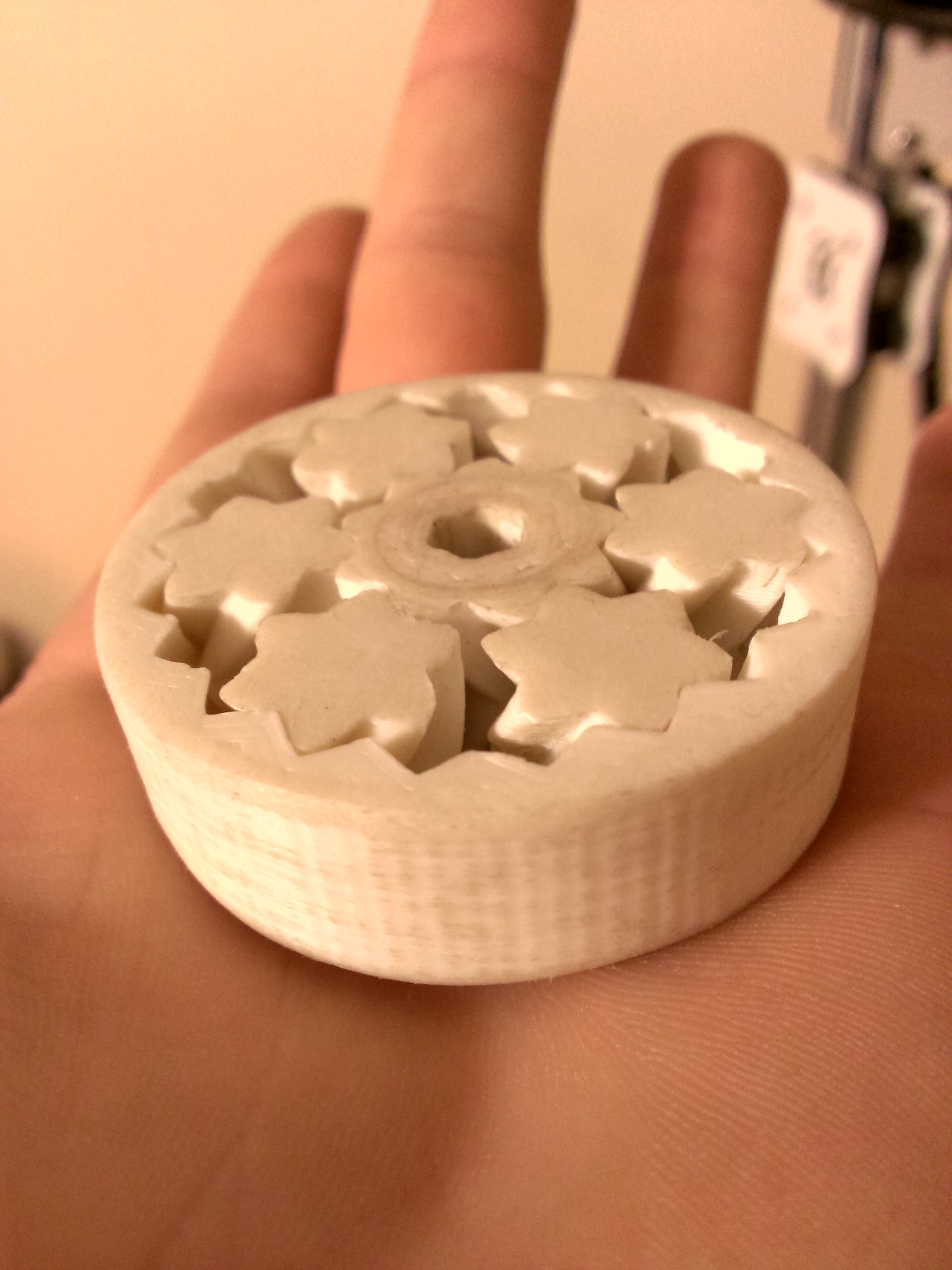 Well folks, I'm currently struggling with some PLA printing. It seems that the extruder motor gets just hot enough to soften the PLA and let it get chewed up and jammed in the area just after it feeds past the hobbed bolt. I'm going to try running a box fan at the extruder motor/PLA itself to see if that helps at all. The vegetable oil trick (rubbing it on the filament every so often) seemed to work for a little bit, but the print I'm about to attempt is close to 10 hours. Short of designing a small pod that holds a sponge soaked in oil, that allows filament to pass through it, I'm about out of options with this particular brand of PLA and may just have to buy a new roll.