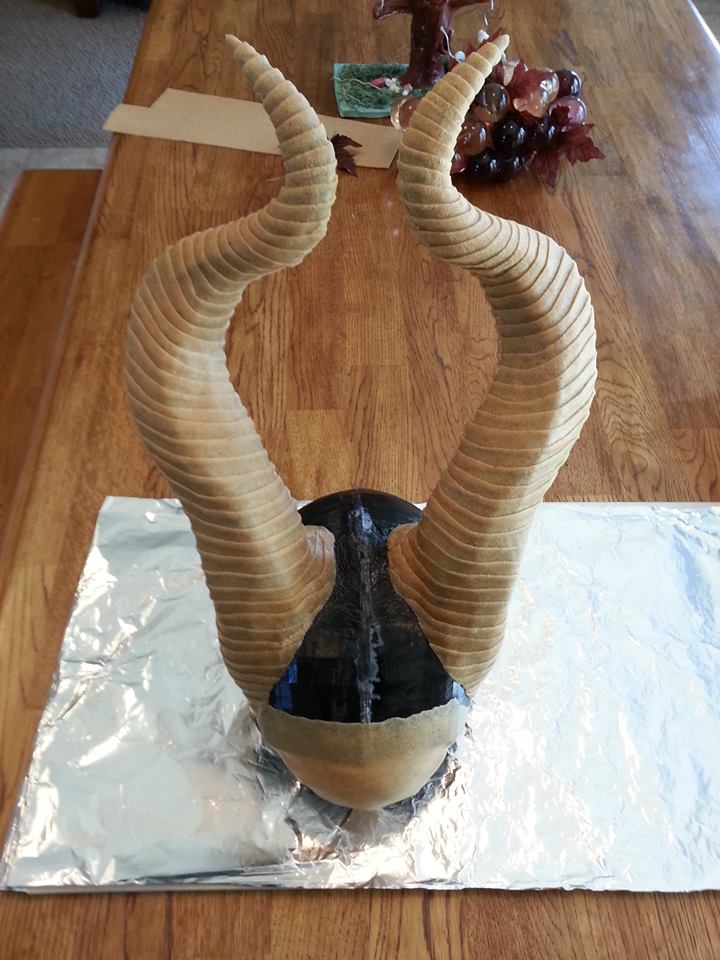 Here's the final Maleficent horns after the Worbla, painting and leatherwork. I think they turned out awesome!