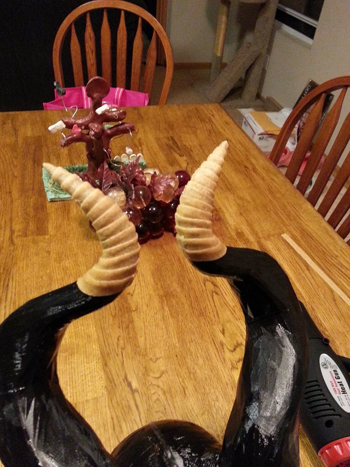 Here's the final Maleficent horns after the Worbla, painting and leatherwork. I think they turned out awesome!