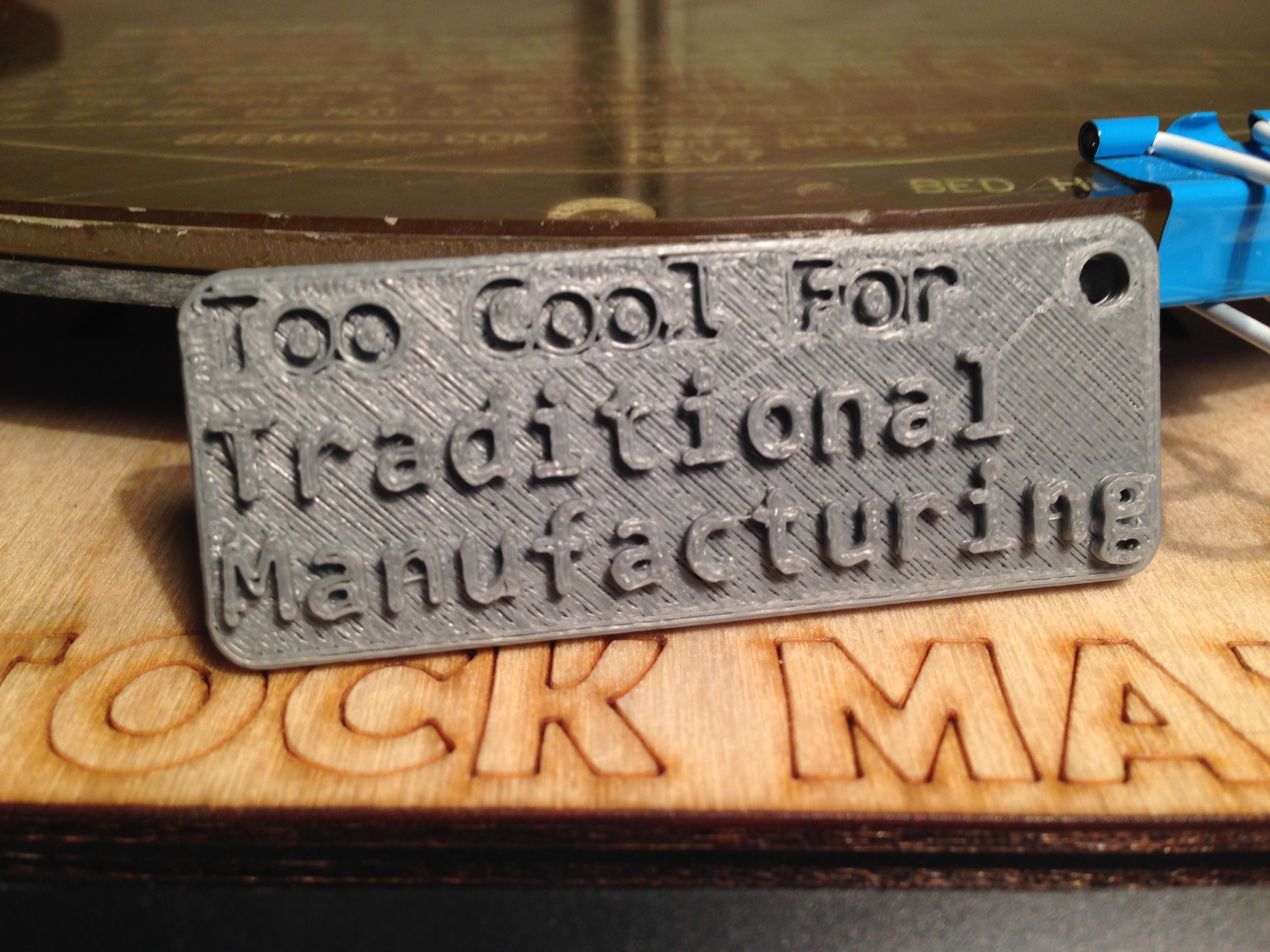 The print I did last night failed (shortly after I turned off my light, I knew that thing makes prints finish properly..) I think i had it way too hot for the Nylon, when I screwed with the nozzle there was a plug made out of some leathery nylon. I was at 280, I think I was compensating a bit too much (first print I had had poor adhesion). I just finished an ABS print and it looks pretty good. Was at 250, might try lowering the temp on some other prints in the future, 250 is a tad high. Looks pretty good though.