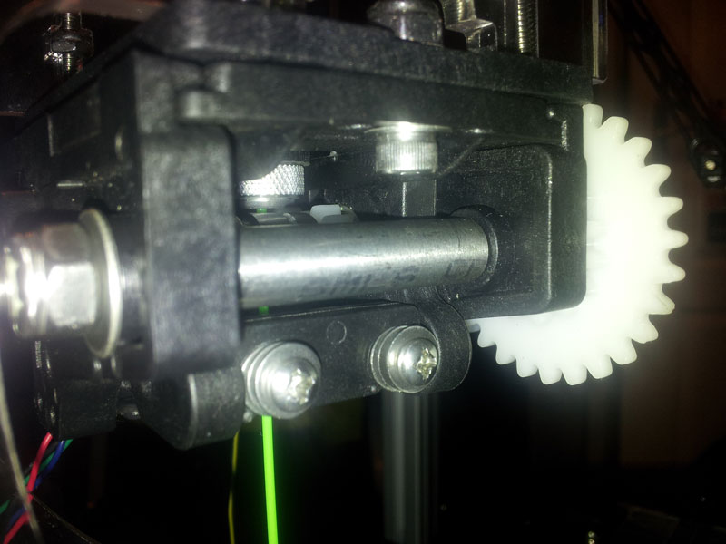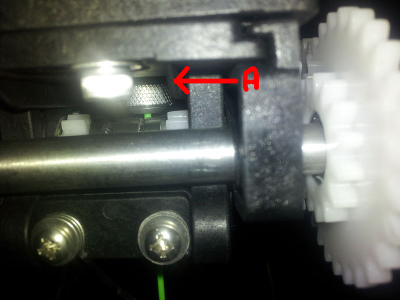 I milled 1,5mm of black plastic (A), this way knurled nut can go higher. This solves problem of rubbing gears