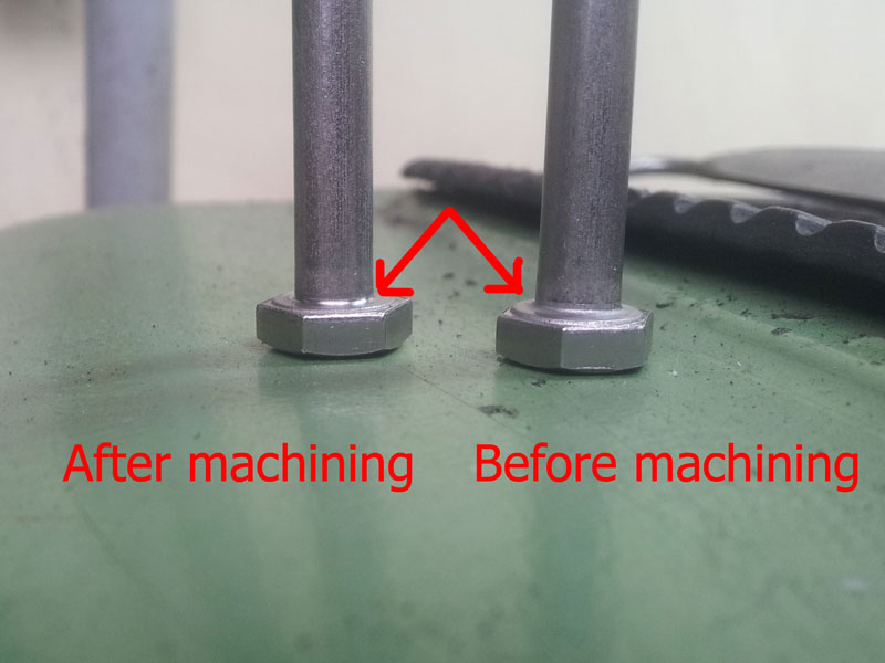Screws from making process has this little brim under the head, which isn't helpfull when you try to place the bearing under the head of screw. It catches the bearing. ( Pointed ont the photo) I use lathe to get rid of it. I think you can also you some kind of file.