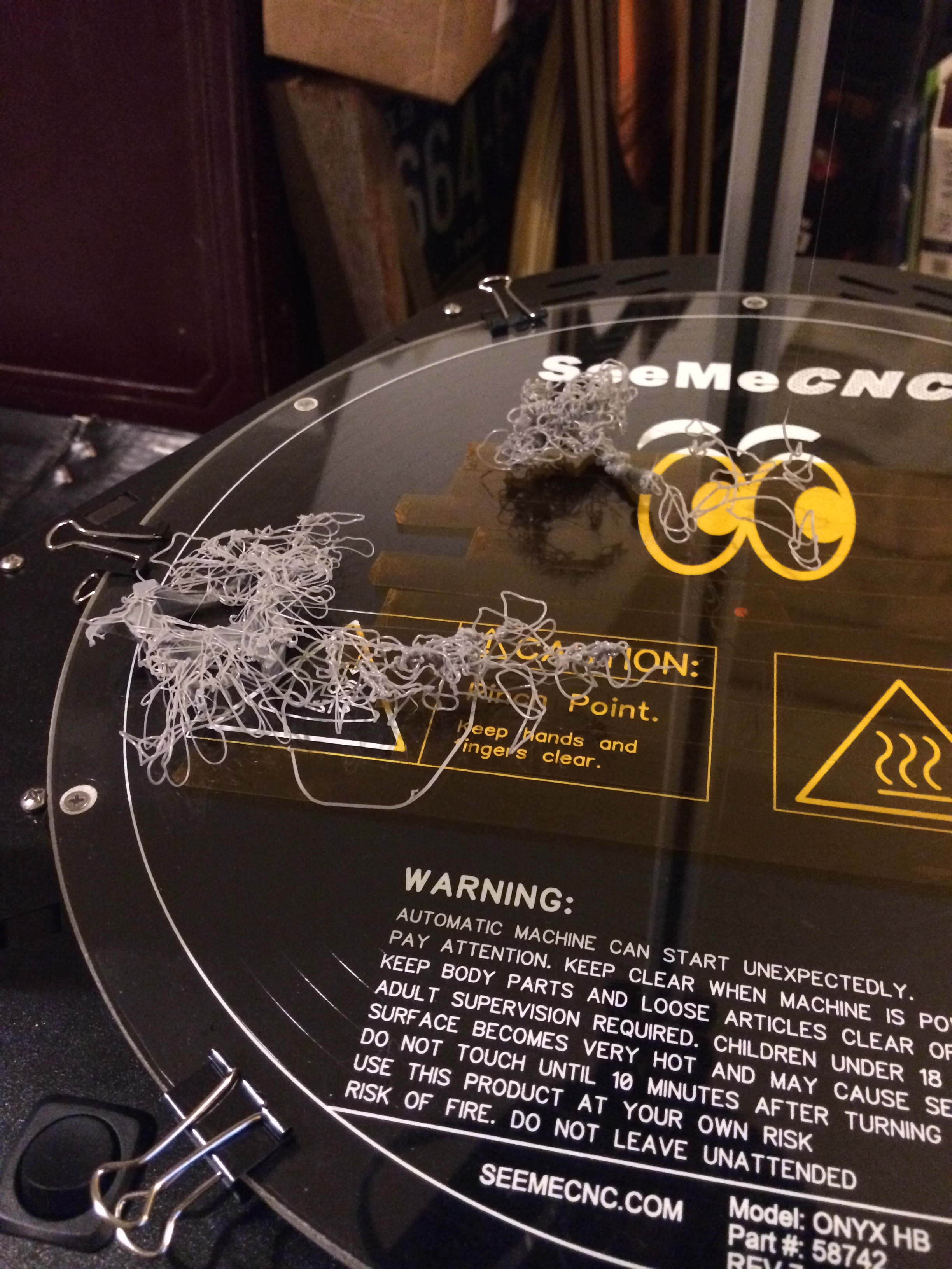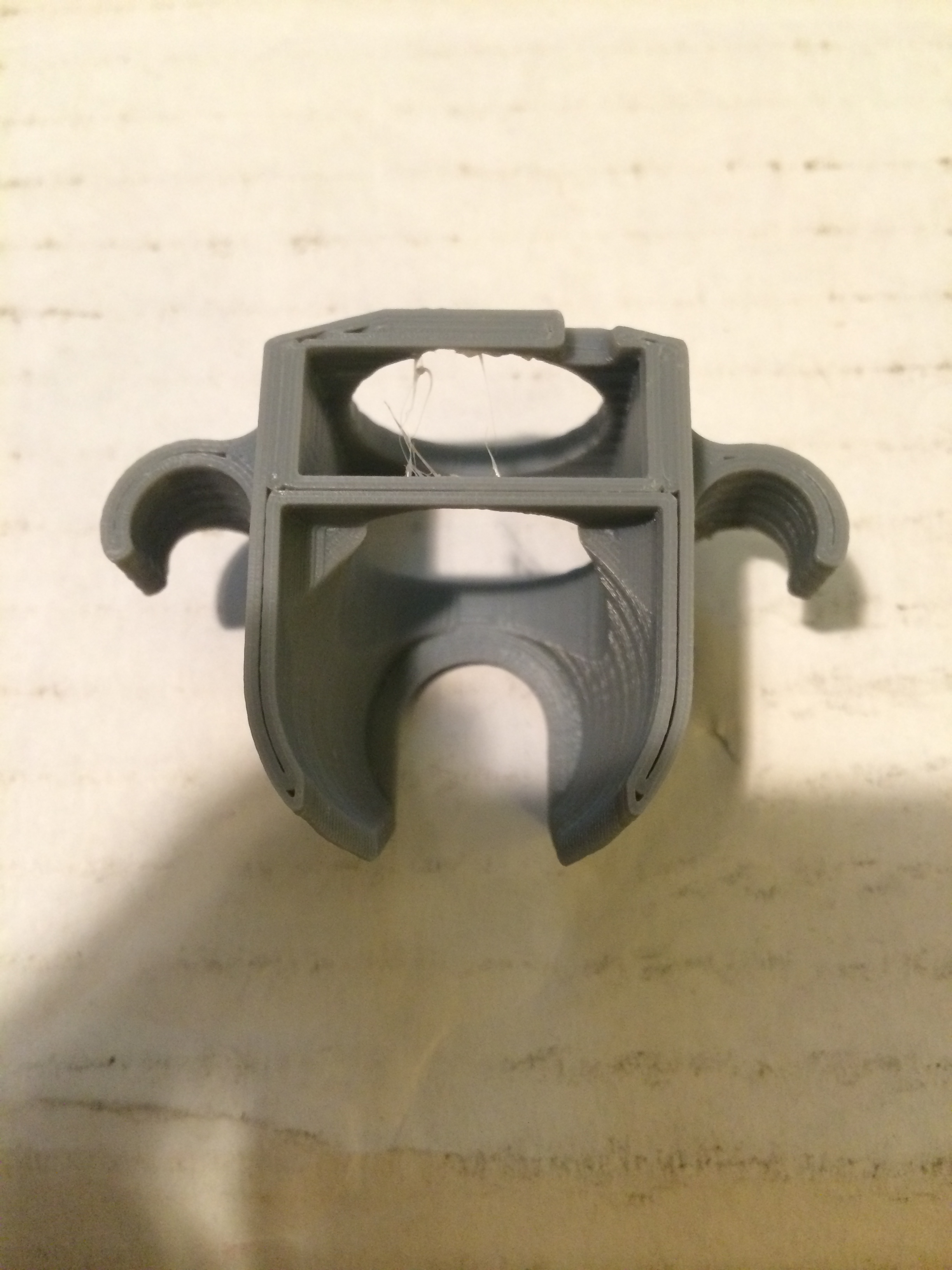 It came out well enough to do it's job, but it definitely has its flaws that I wouldn't want to see in my future prints. I've provided plenty of images, I hope you guys will pick over them and maybe offer up suggestions to get rid of some of the flaws like the spaces in the walls, the unflat base, and the strangeness in the bridges and overhangs. Also, my printer dribbles a lot before printing. I sit there and pick the excess extrusions off just before the printer goes into action so its not dragging around extra plastic. Is there anyway of stopping this? My first goal is to enclose the work space. It doesn't need to be heated, I'd just like to protect the print from drafts and myself from the smell.