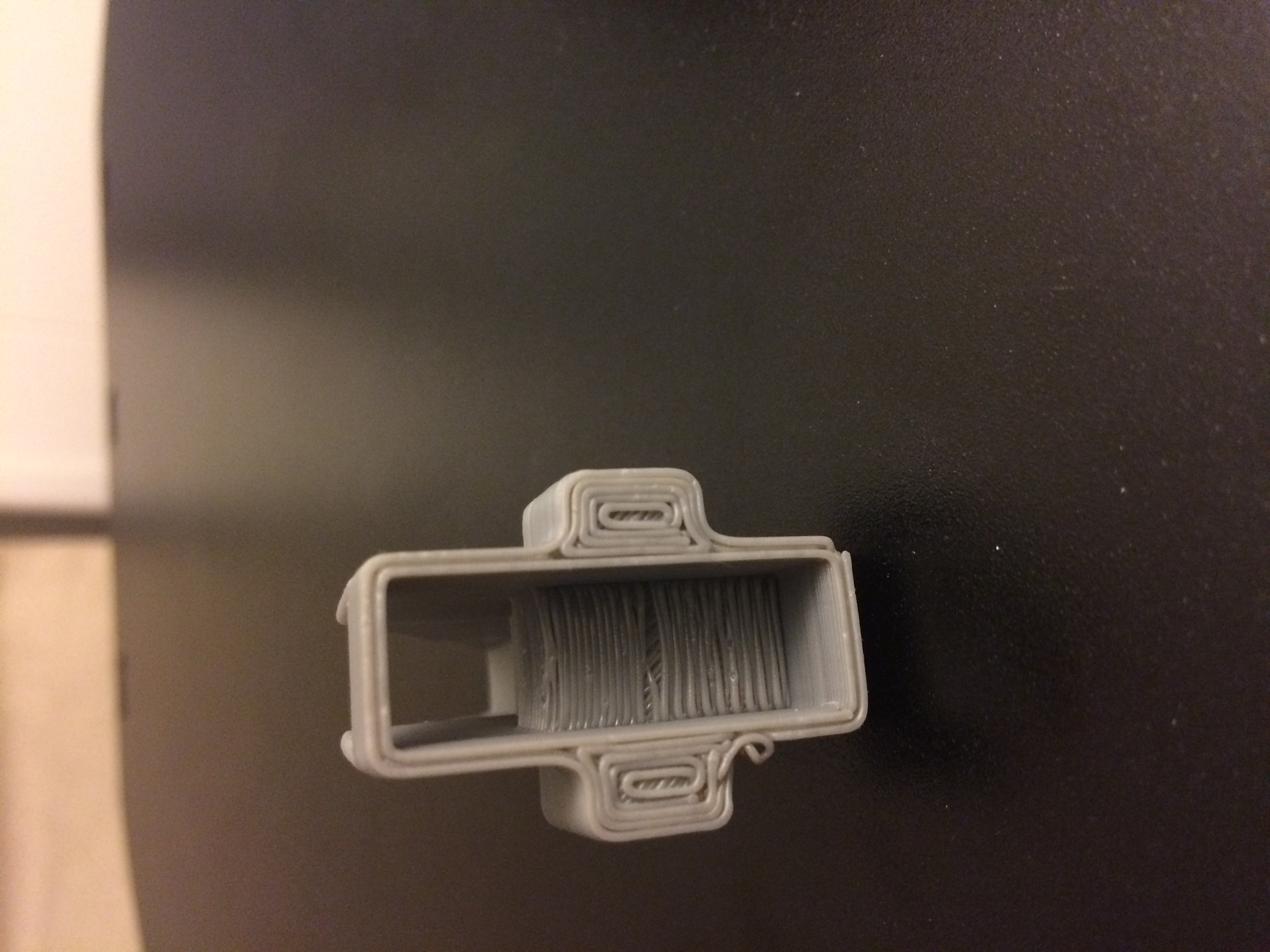 It came out well enough to do it's job, but it definitely has its flaws that I wouldn't want to see in my future prints. I've provided plenty of images, I hope you guys will pick over them and maybe offer up suggestions to get rid of some of the flaws like the spaces in the walls, the unflat base, and the strangeness in the bridges and overhangs. Also, my printer dribbles a lot before printing. I sit there and pick the excess extrusions off just before the printer goes into action so its not dragging around extra plastic. Is there anyway of stopping this? My first goal is to enclose the work space. It doesn't need to be heated, I'd just like to protect the print from drafts and myself from the smell.