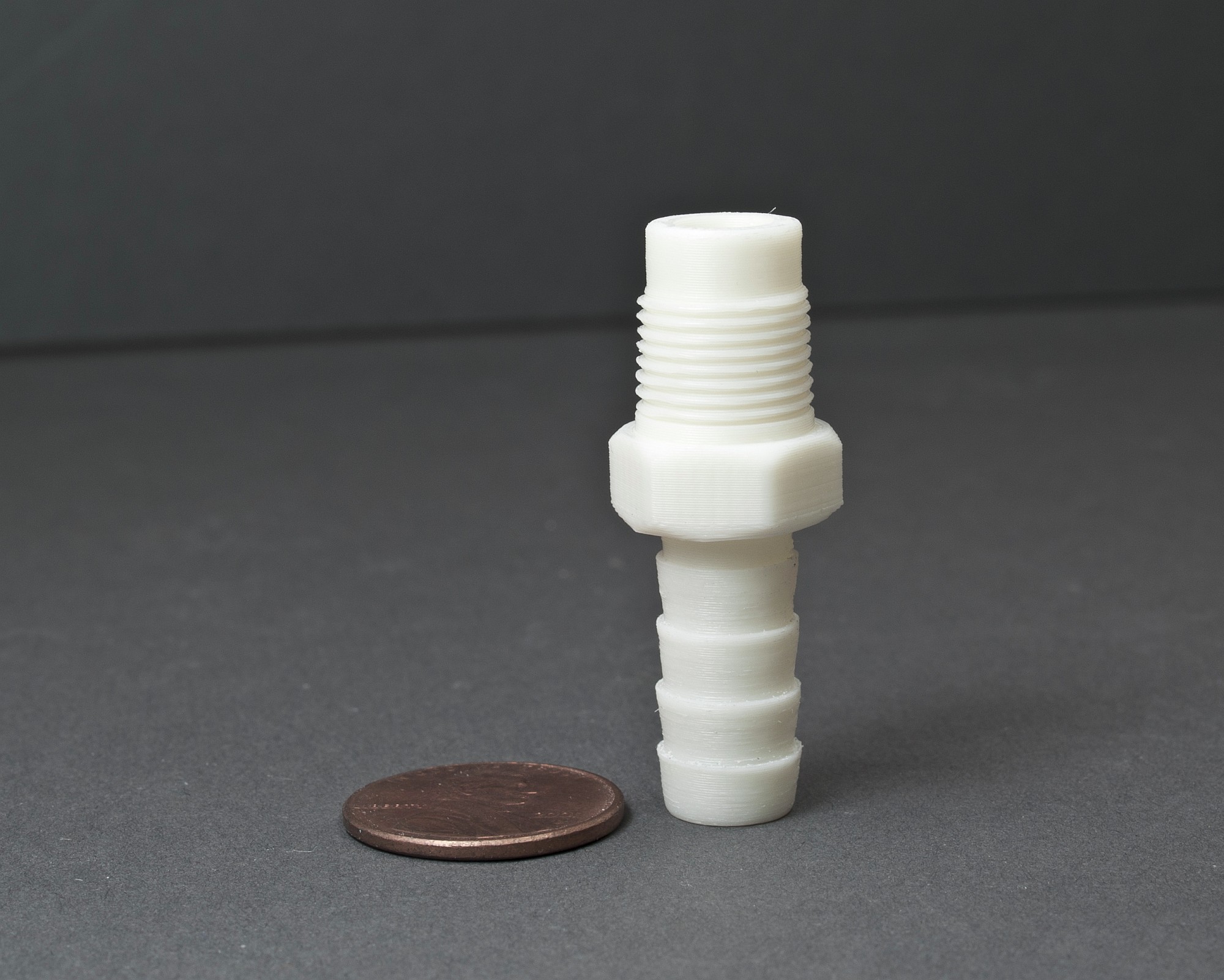 Nicely done. What is your layer height? Minimum layer time?heathenx wrote:Here's one I just printed this morning. 12mm-1.0 tapered thread x 9.5mm barb. Threads look a little rough in the picture but screwed in perfectly to the metal female thread. ABS and sliced with S3D.