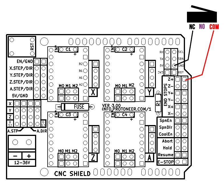 1st question : one friend give me a protoneer GBRL+Uno+Pololu's drivers (cheap and nice) protoneer using end stop soldering in COM and NO, (signal and ground ) i see in your manual that u using COM (signal) and NC.