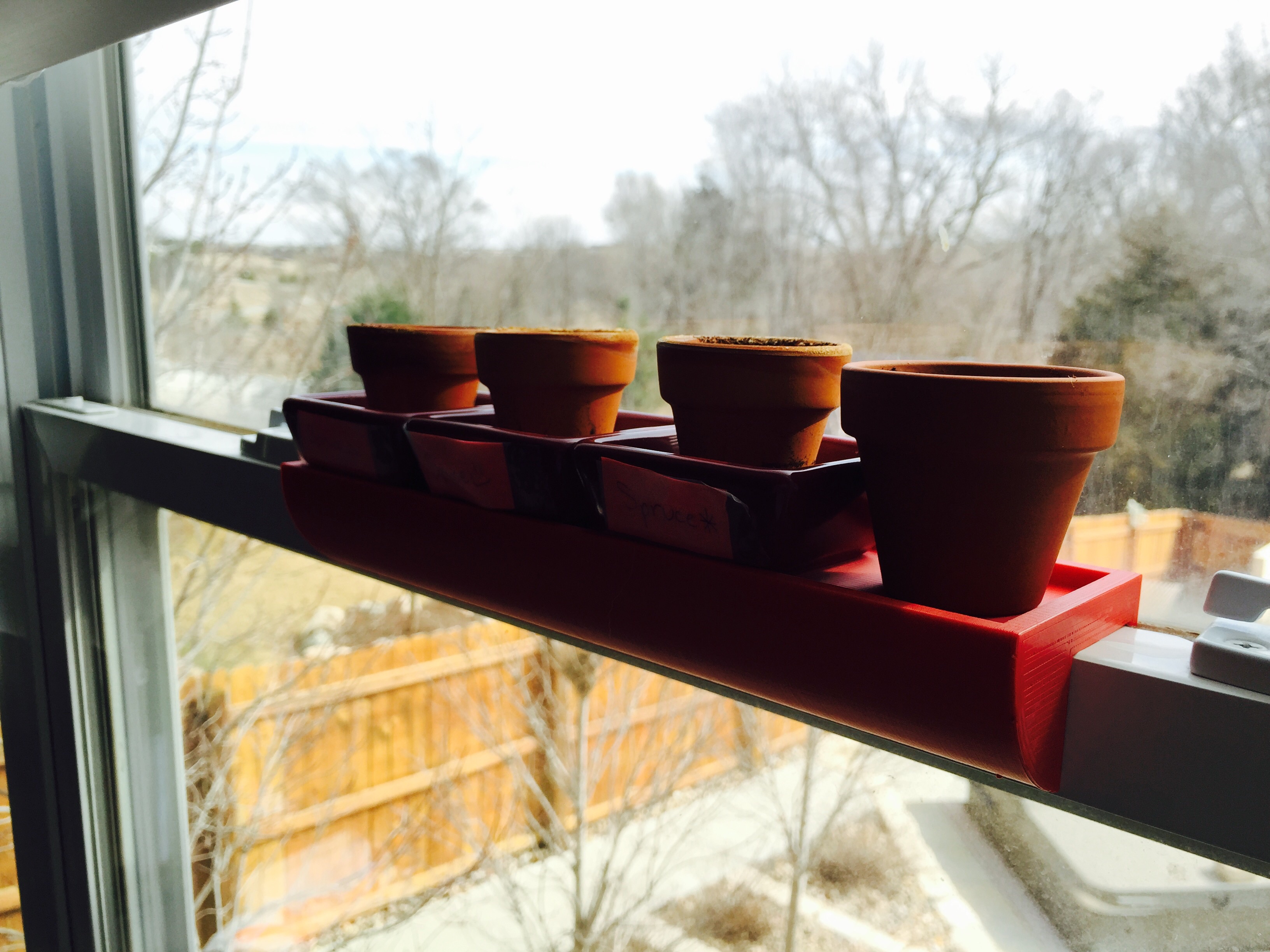 Thus, she wanted make a small window ledge shelf to hold her small teracitta pots. She designed the image and exported the STL. Was a 16 hour print. Stuck awesome to the PEI and no separation. I did notice a print shift at one layer. Otherwise looks awesome.