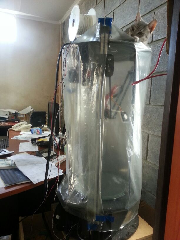 I'm a new Rostock Max v2 owner and so far I've done a few small ABS prints with no troubles so I decided to start one of my larger prints. These are parts for a car mod that I'm doing. Well I got major delamination. What do you guys think might cause this, or help it rather? I was printing at 225c nozzle / 90c bed. I do not have an enclosure around my printer but other folks tell me they can print ABS "OK" without an enclosure. Ambient room temp is in the mid-70's with no breezes or anything. I sliced the part with the Cura slicer that's built in to Repetier Host, using a config file that I got here from the forums. I checked and the Cura config was about the same as the Rostock Max MatterControl config that you can download from SeeMeCNC. So I'm open to suggestions!?