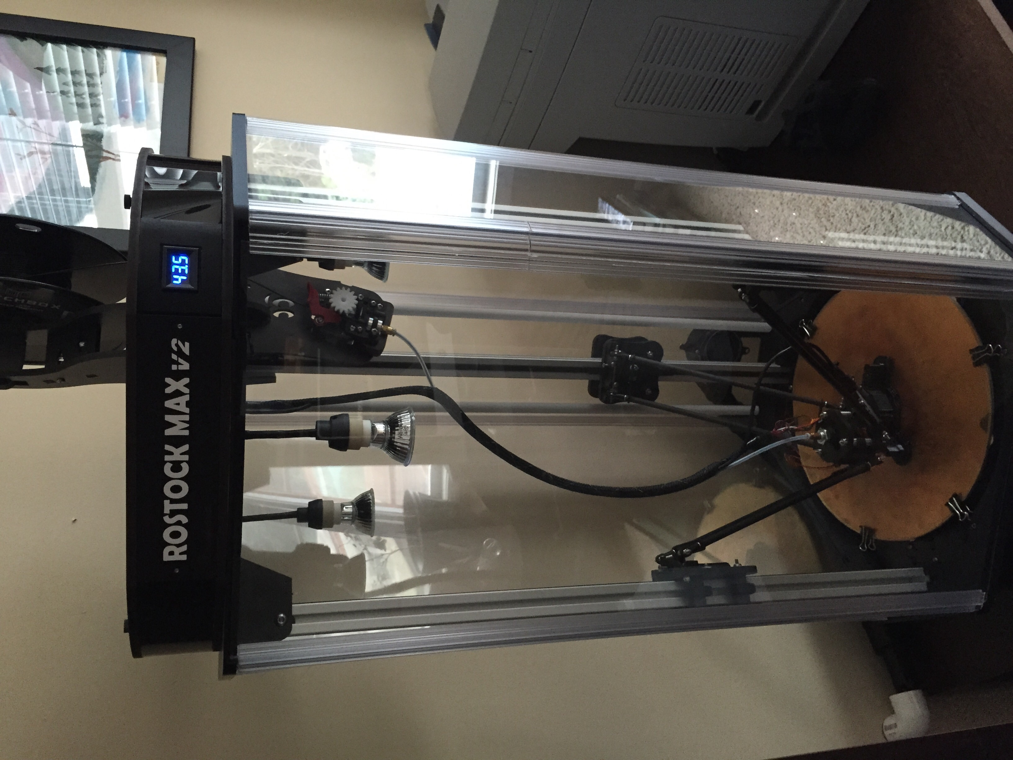 The enclosure was 50-53 degrees the other day when my office was warmer, the bed was at 100 C and the three 50 W halogens were off. I can increase the chamber by up to 10+C with the lights on depending on how bright I set them with the rheostat.