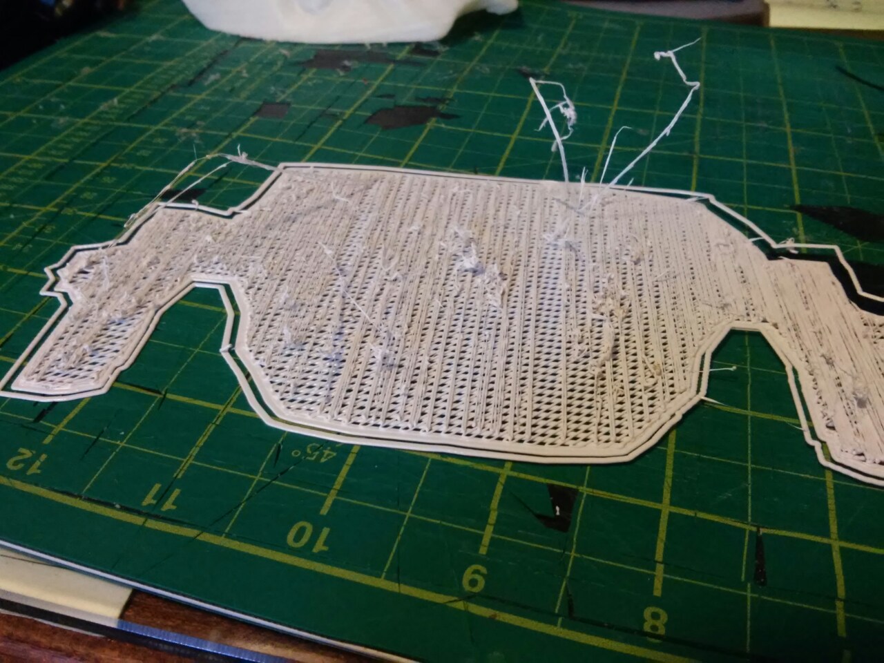 you have support enabled as lines that is most of what you are seeing, turn off support, the piece should not need it increase your infil to .5 or .8 I assume its calibrated correctly and your calibration cube has been printed and checks out.