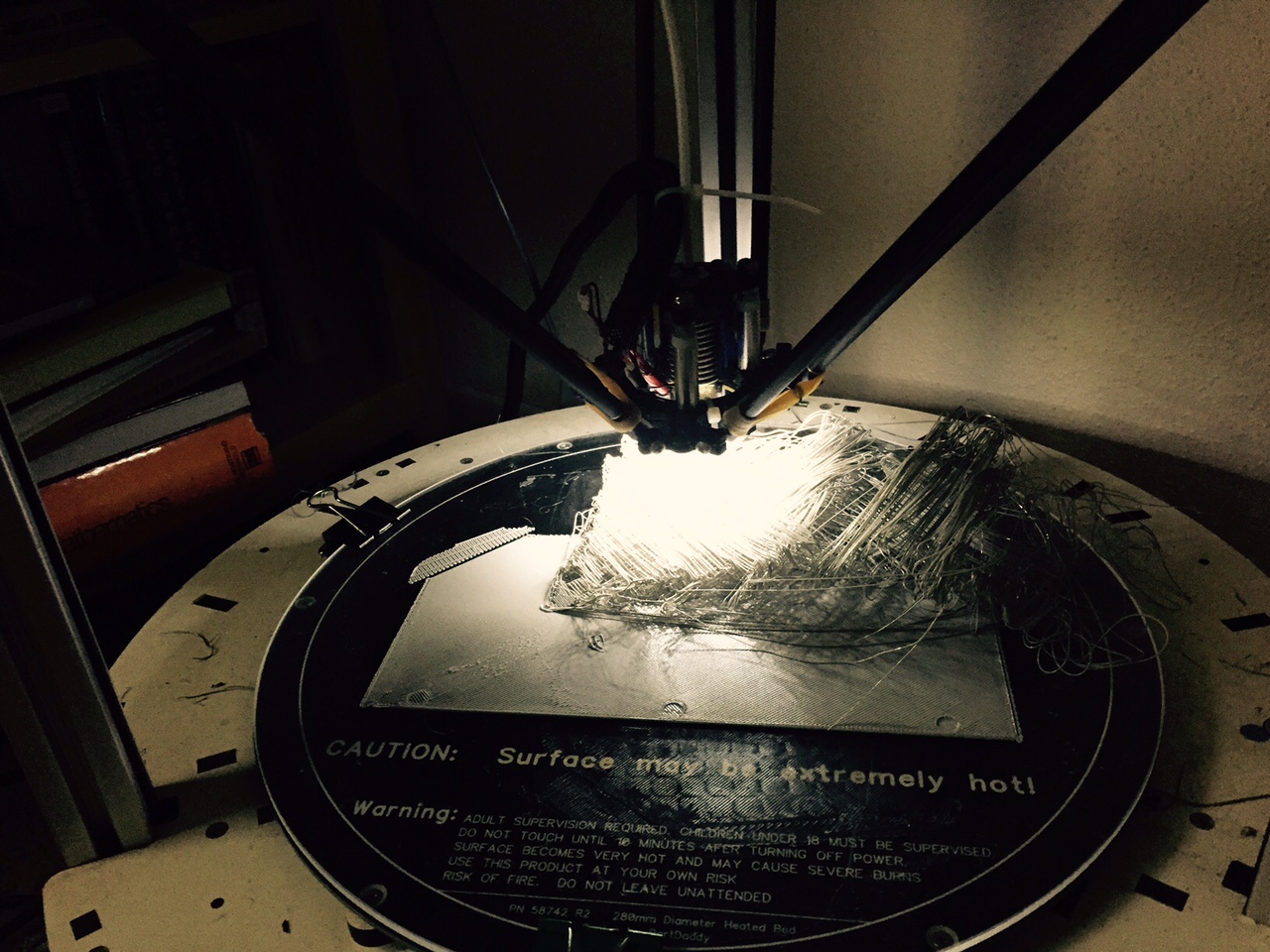 Any idea why this print keeps failing. I have just about wasted an entire roll on this part. The print does not fail at the same point each time, but randomly about in the first half of the print. The total print is about 12-20 hrs depending on the layer height that is choosen. Object is sliced in KISS. It seems to print the first few layers perfectly. I have gotten as high as a 1/3 of the way up before it decides to do what is shown in the picture. The print head starts printing several inches off the object. Because it is a long print I have never been in the room when it happens.