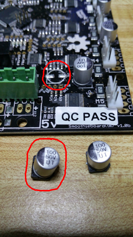 On 8/24/15, I hadn't heard back. I sent another email asking for an answer within two days, and stating that I would take action to recover my losses if it was not answered.This was an order for two Smoothieboards. One is okay. The other is DOA. Wired up the board and discovered that two axes wouldn't move. Looked next to the board and saw a cap just sitting on the table next to it. It had come off because it wasn't soldered properly. I tested the rest and found another one peeled off with very little effort. The rest were in there solidly.