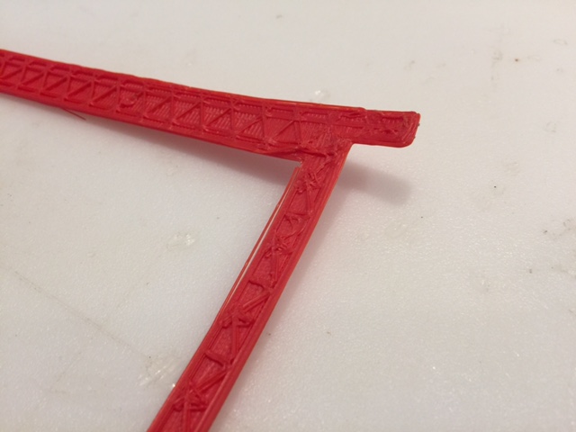 The two problems I encountered were the obvious de-lamination, and that the glue came unstuck on one corner of the print. That corner curled up slightly (about 1/4") but the printer just kept chugging along as though everything was as it was meant to be.