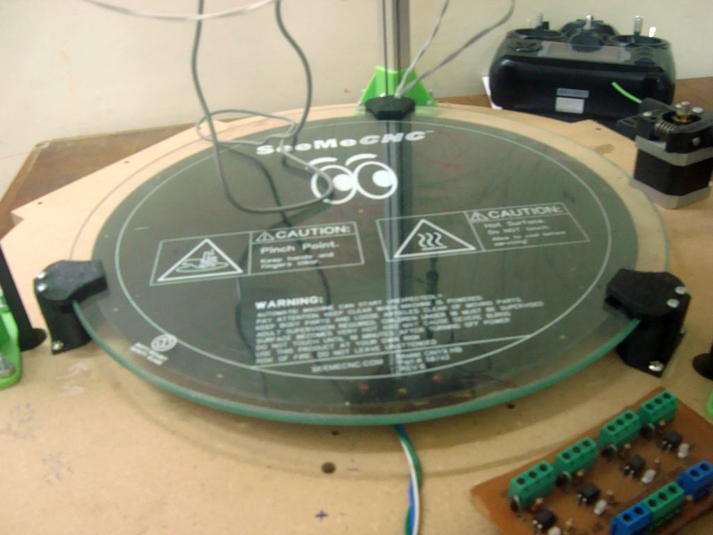 Here is the bed leveller for 310mm SeeMeCNC heat bed and my custom tempered 5mm glass (340mm diameter).
