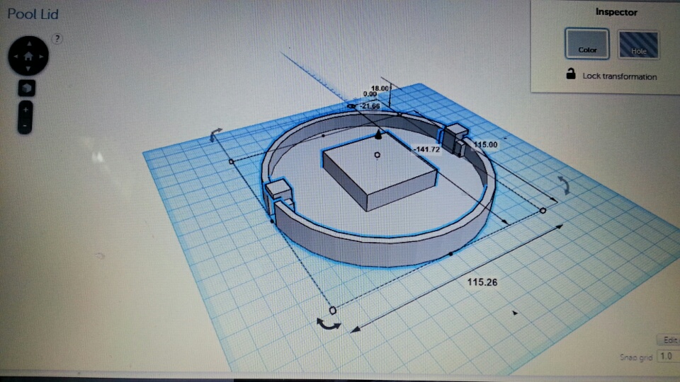 So the sun has baked the twist-off lid on my pool chlorine floater. Instead of driving down to Leslie Pools and buying a new one for $16.00, I designed and printed a replacement our of high-impact polystyrene for about $2.00. It has been out there for the past three weeks and shows no sign of corrosion.