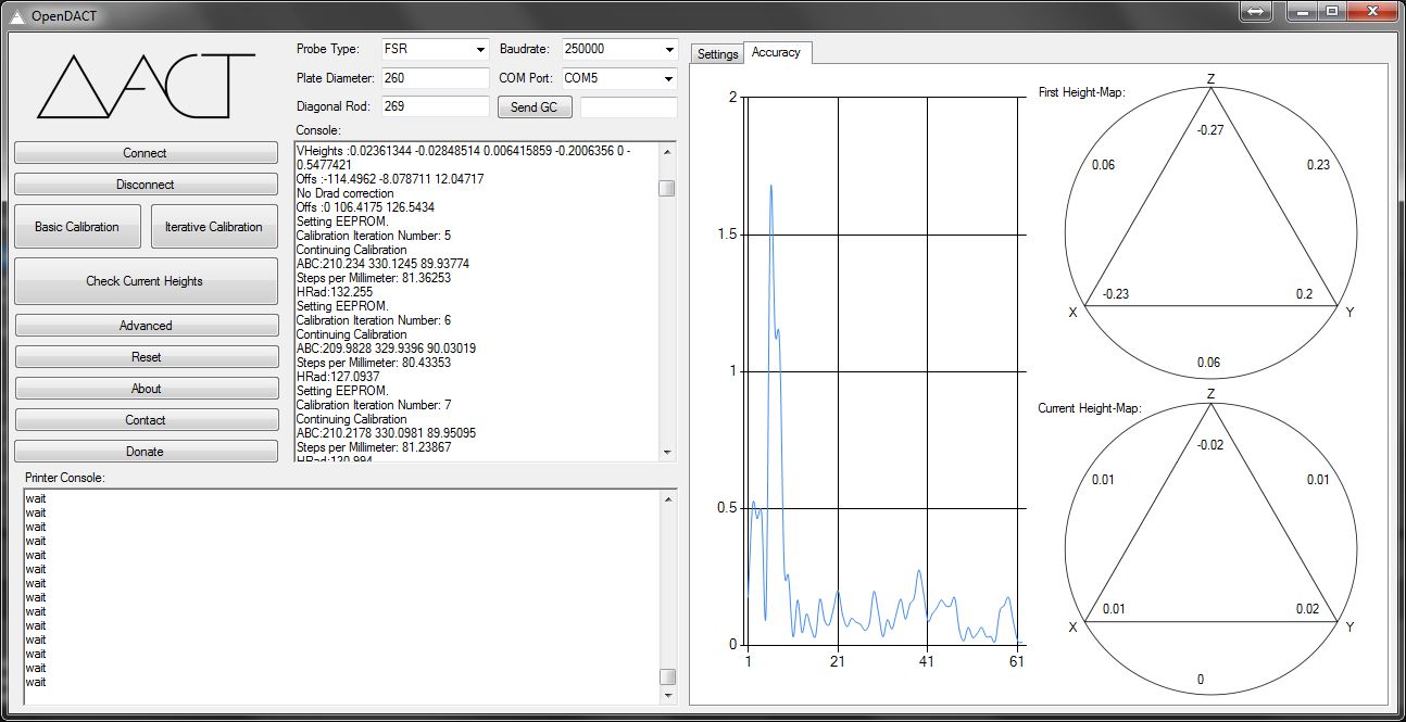Yes, you are most likely having a similar issue. So if you would like to generate a height map then we could try and diagnose the issue.SirLinhart wrote:Our issue sounds similar to mhackney's. Regardless of calibration method we end up with 2 dips in 2 spots in the bed. Belts are evenly tight, skates are well locked in, rubber bands on the arms. We have an adjustable limit switch Z-probe that we set to match the position of the hotend to about .3mm. Have repositioned the bed multiple times, verified level by using a Starrett level. Multiple iterations though opendact from 2.0 to current on all modes. This has consumed a nauseating number of hours. I did pick up a set of tricklaser arms/effector/skates for a mex metal build, I can try them to see if it makes a difference, that will be our next step. If that fails then I'm not sure what to do besides an entire rebuild, and I'm not sure if Caspers frame can handle it.